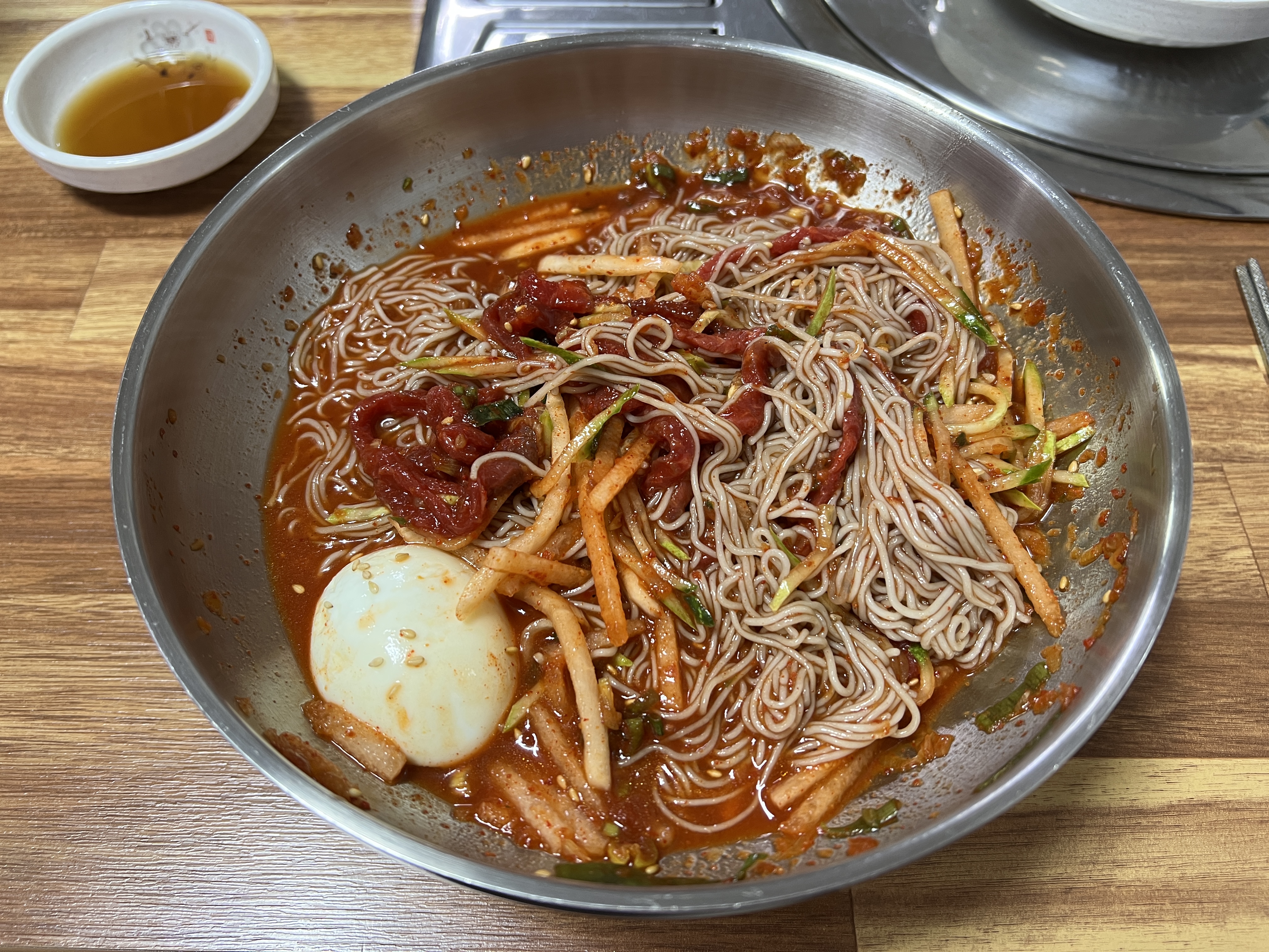 고기 먹고 나오는 냉면처럼 너무 자극적이지 않은데 깊이는 느껴지는 비빔냉면의 맛이었습니다. 냉면이 굉장히 맛있어서 다음엔 물냉면을 먹어보고 싶을 정도로 좋았습니다.
