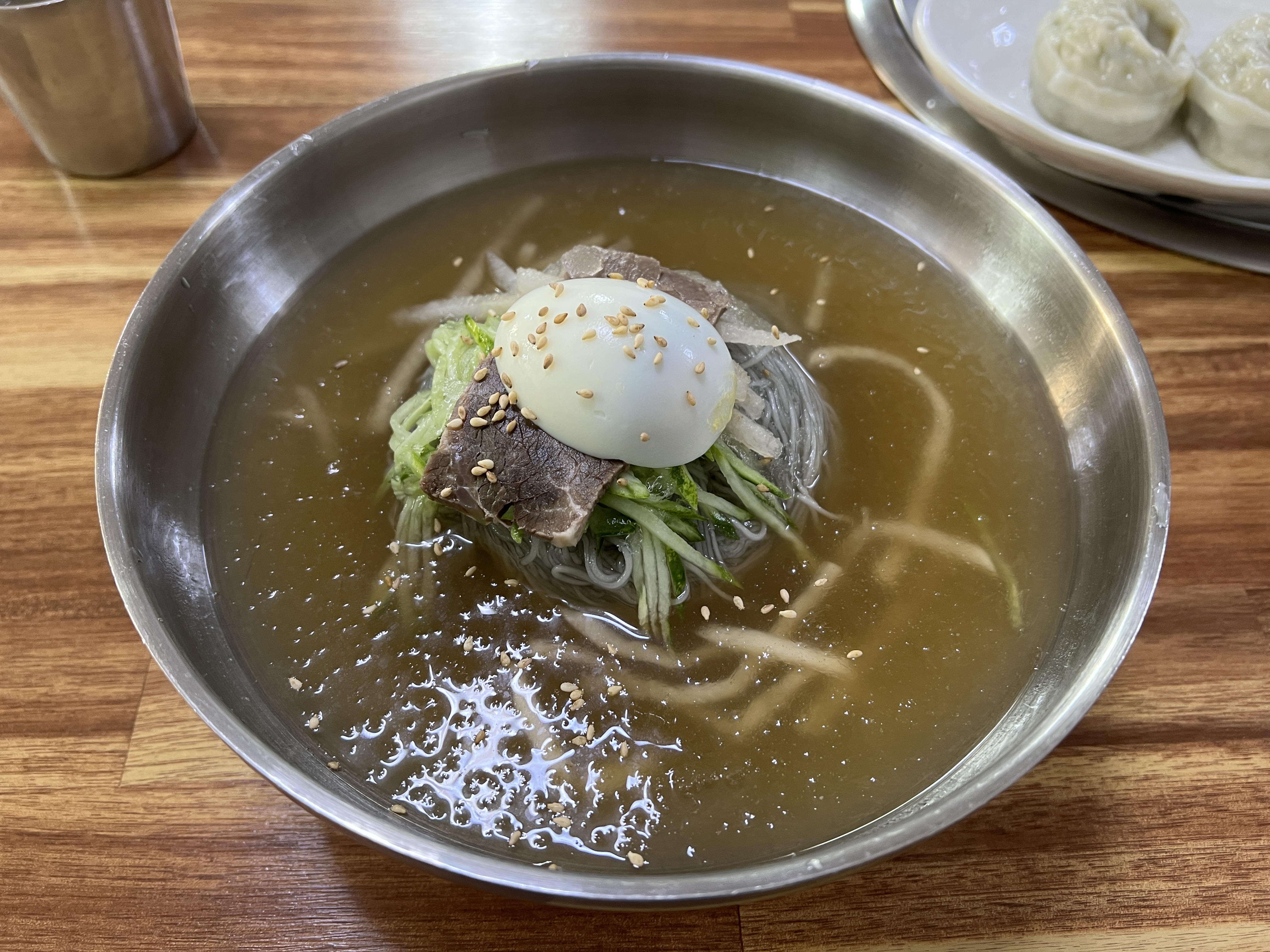 고려랭면의 또 다른 추천 메뉴 왕만두입니다. 만두 속이 가득 차있어서 너무나 맛있습니다. 오죽하면 만두만 주문하고 물냉면 육수를 서비스로 받아서도 먹어보고 싶다는 생각을 하였습니다. 냉면과 만두가 맛있으니 그 둘의 조화는 이야기하지 않아도 되겠죠? 날이 더워지는 요즘 함흥냉면 시원~~하게 한 그릇 어떠실까요?