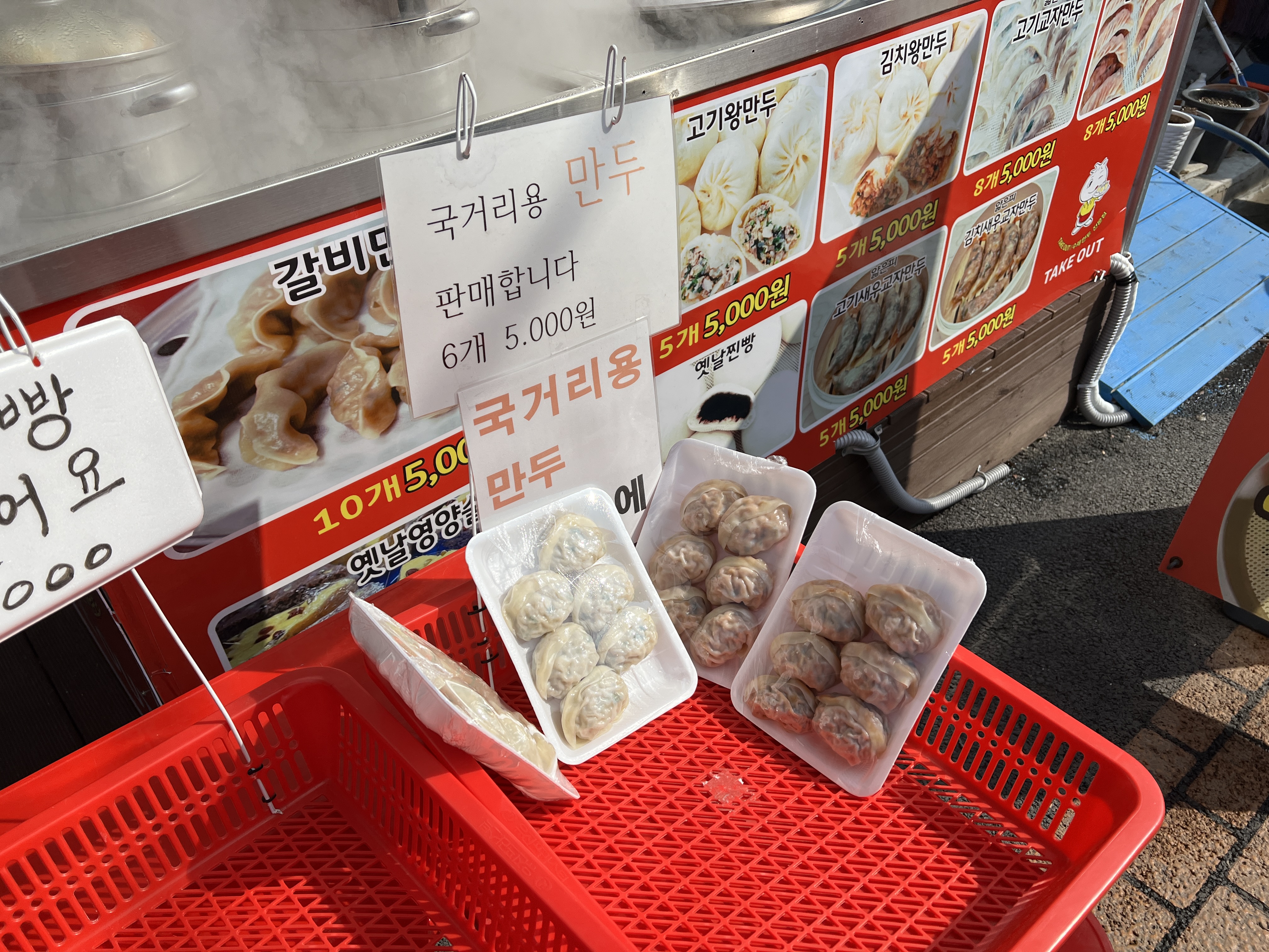 찜기에 넣고 약 4분 정도 기다려야 한다고 하셔서 기다렸는데 기다리며 보니 국거리용은 6개 5,000원으로 만두를 판매하고 계셨습니다. 가족들과 만둣국을 끓여 먹기에도 맛있어 보이는 국거리용 만두였습니다. 차량으로 이동하시는 분들은 미리 전화해서 포장 주문해 놓으시고 픽업만 하시면 될 것 같았습니다.