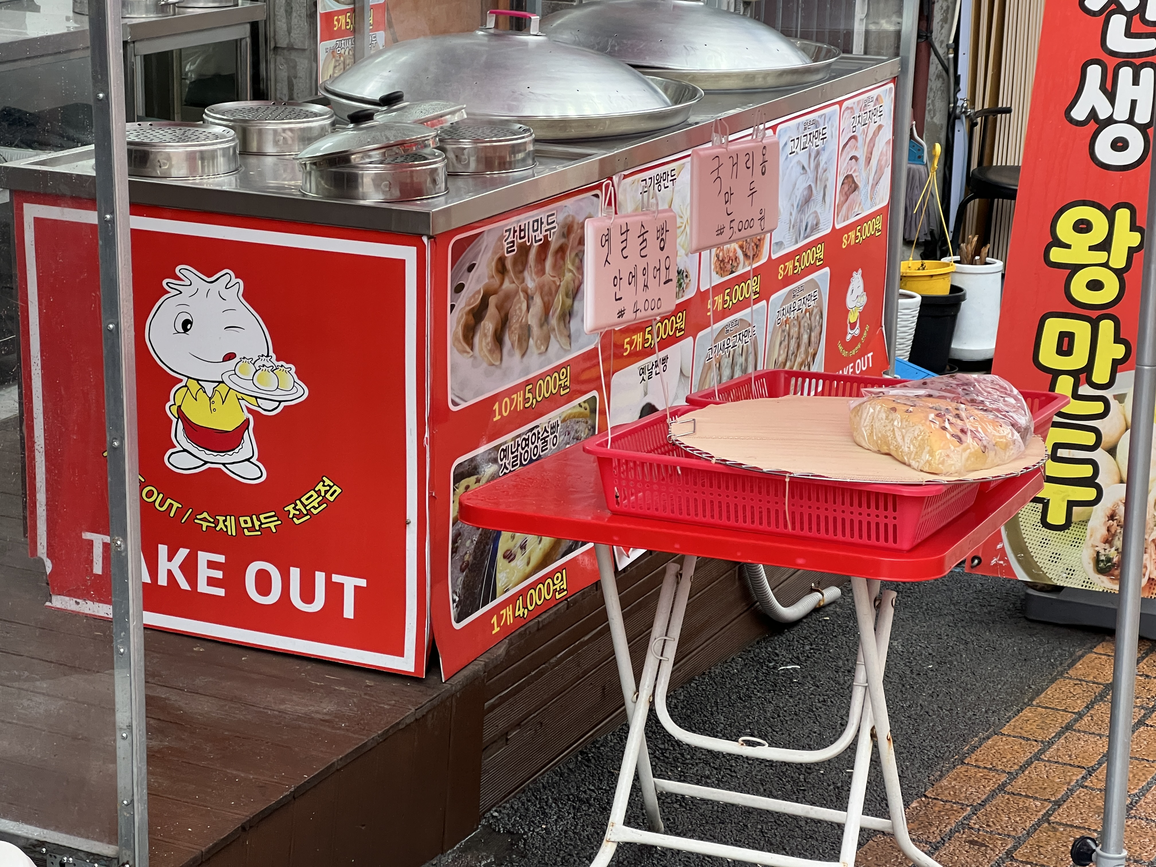 방송을 보다가 만두전골이 나와서 만두를 먹고 싶던 어느 날 새로 오픈한 듯한 만두가게를 보았습니다. 마케팅의 일환인 것인지는 모르겠으나 만두 찜기에서 나오는 연기가 보통 만두가게의 3