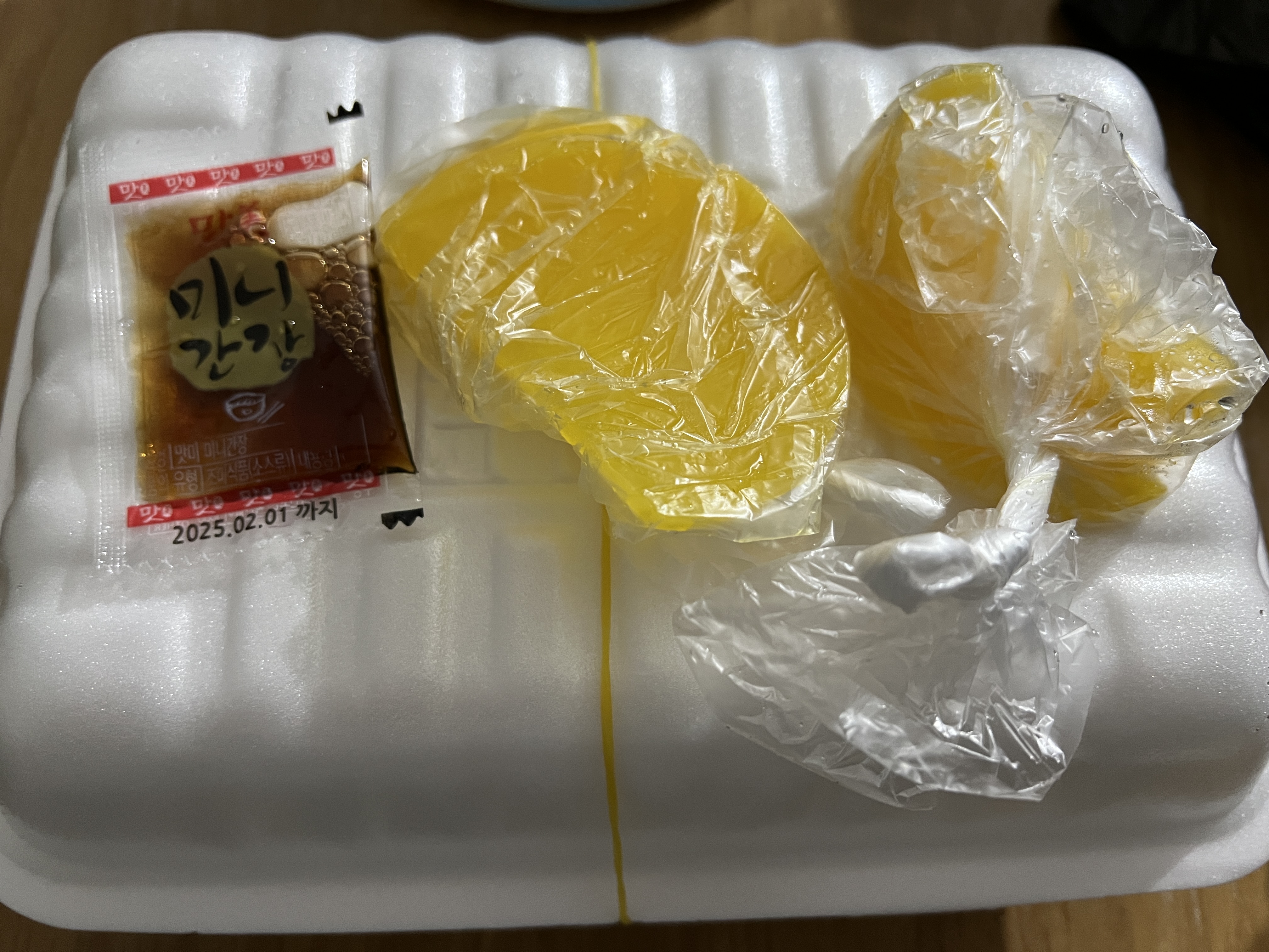 포장을 열어보니 단무지 2봉지, 조미간장 1봉지가 들어있습니다.