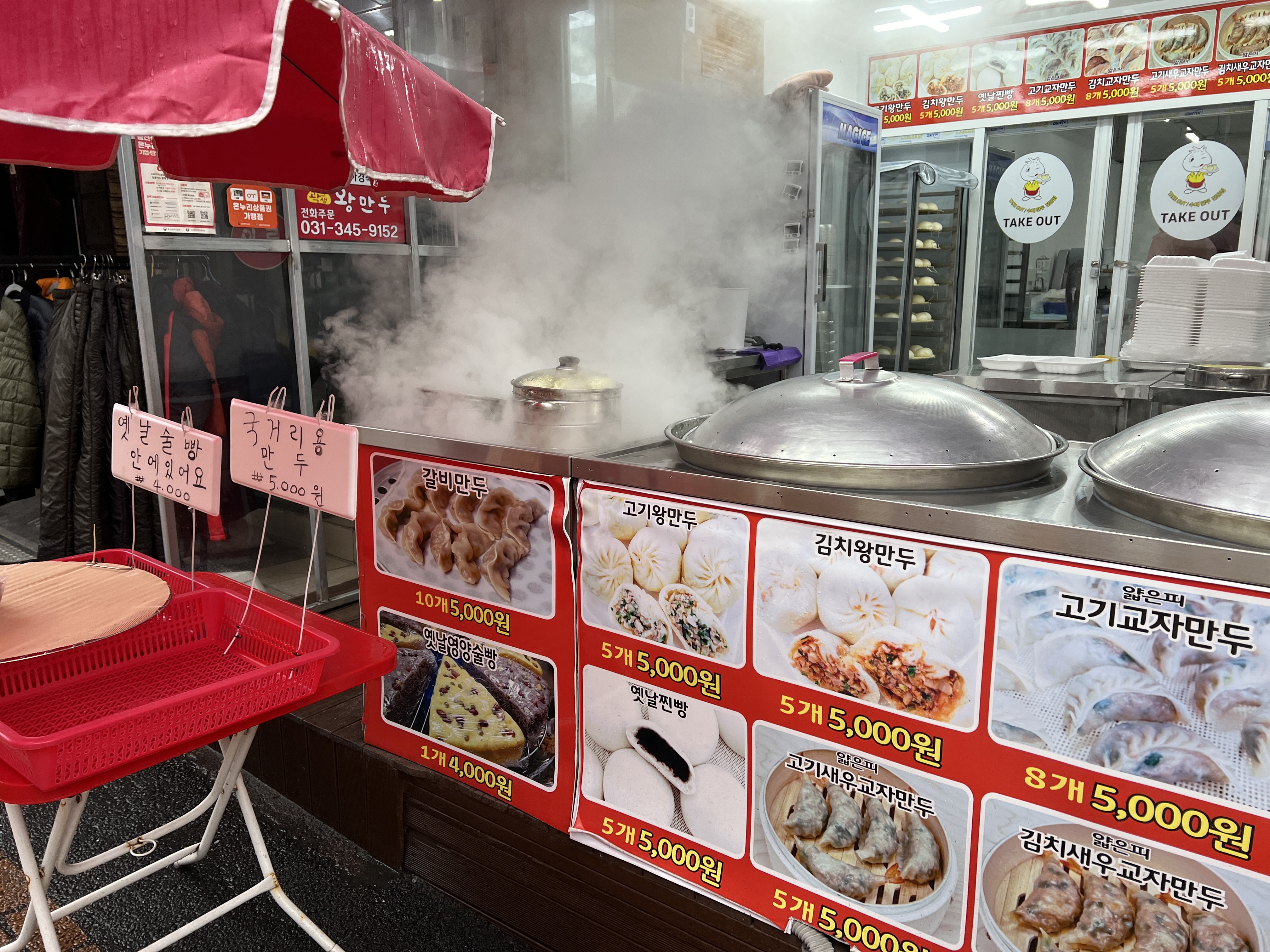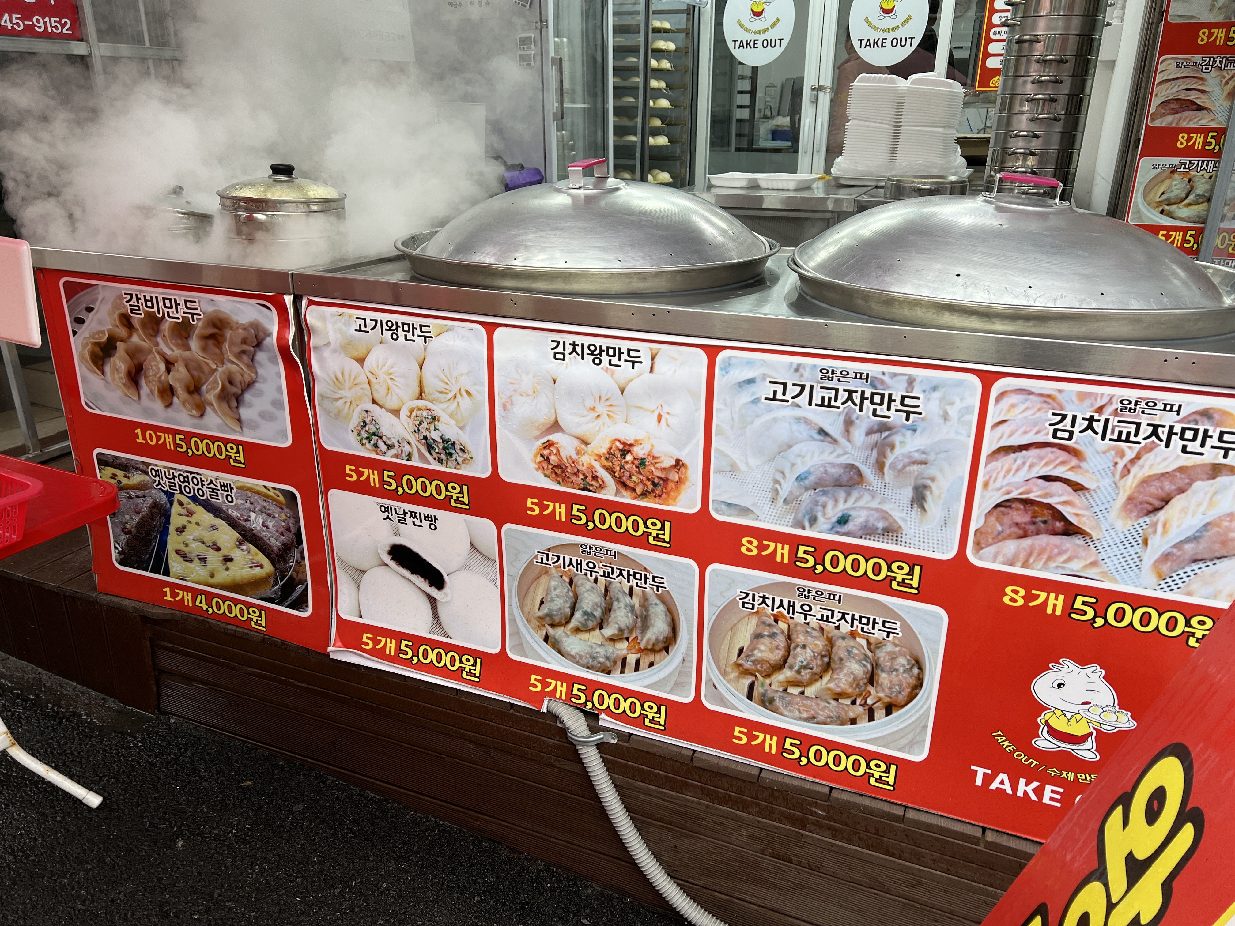 방송을 보다가 만두전골이 나와서 만두를 먹고 싶던 어느 날 새로 오픈한 듯한 만두가게를 보았습니다. 마케팅의 일환인 것인지는 모르겠으나 만두 찜기에서 나오는 연기가 보통 만두가게의 3