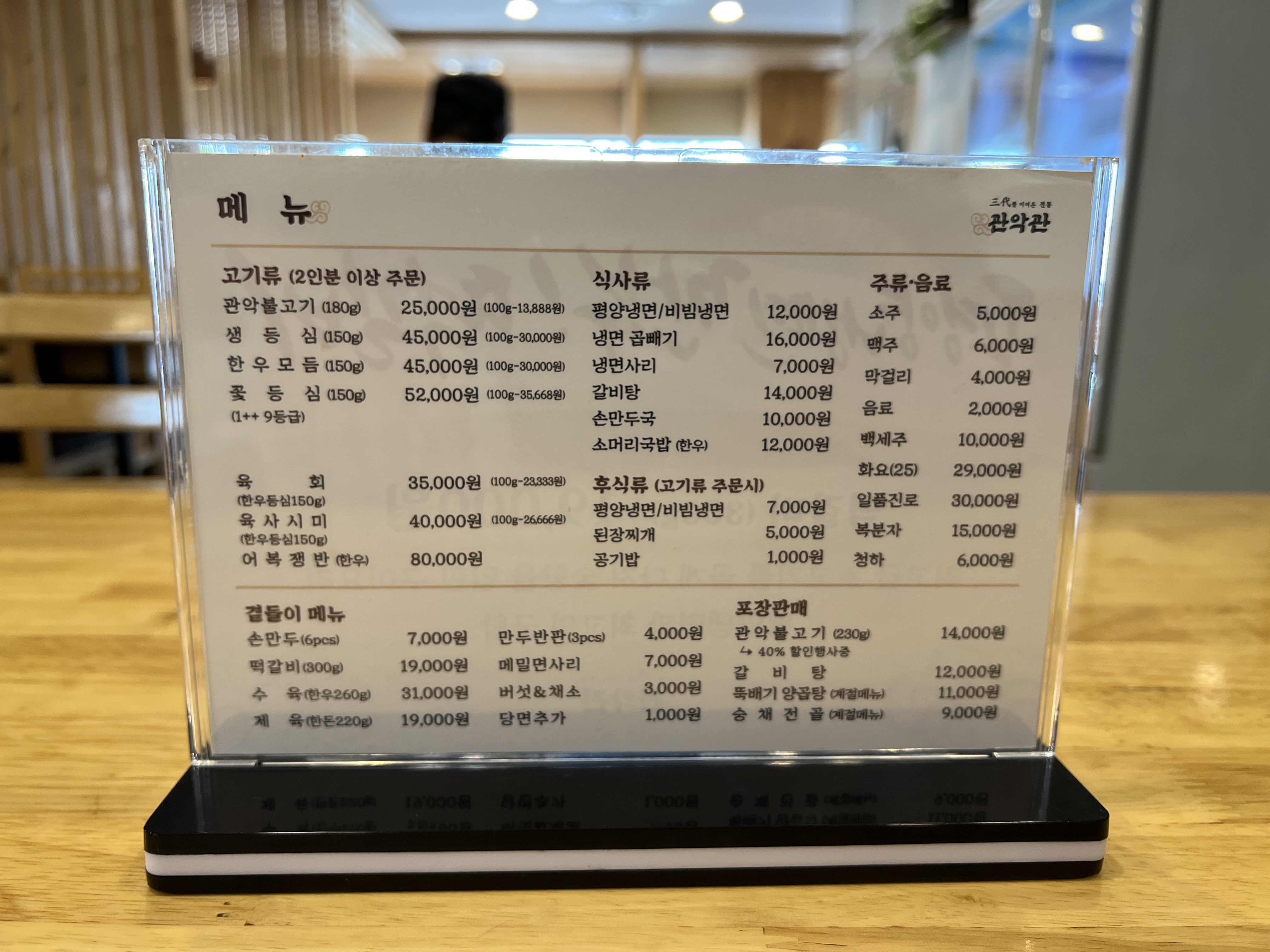 관악관은 2층짜리 독채에서 1층에서는 평양냉면 및 불고기류, 2층은 샤브샤브를 판매하고 있습니다.