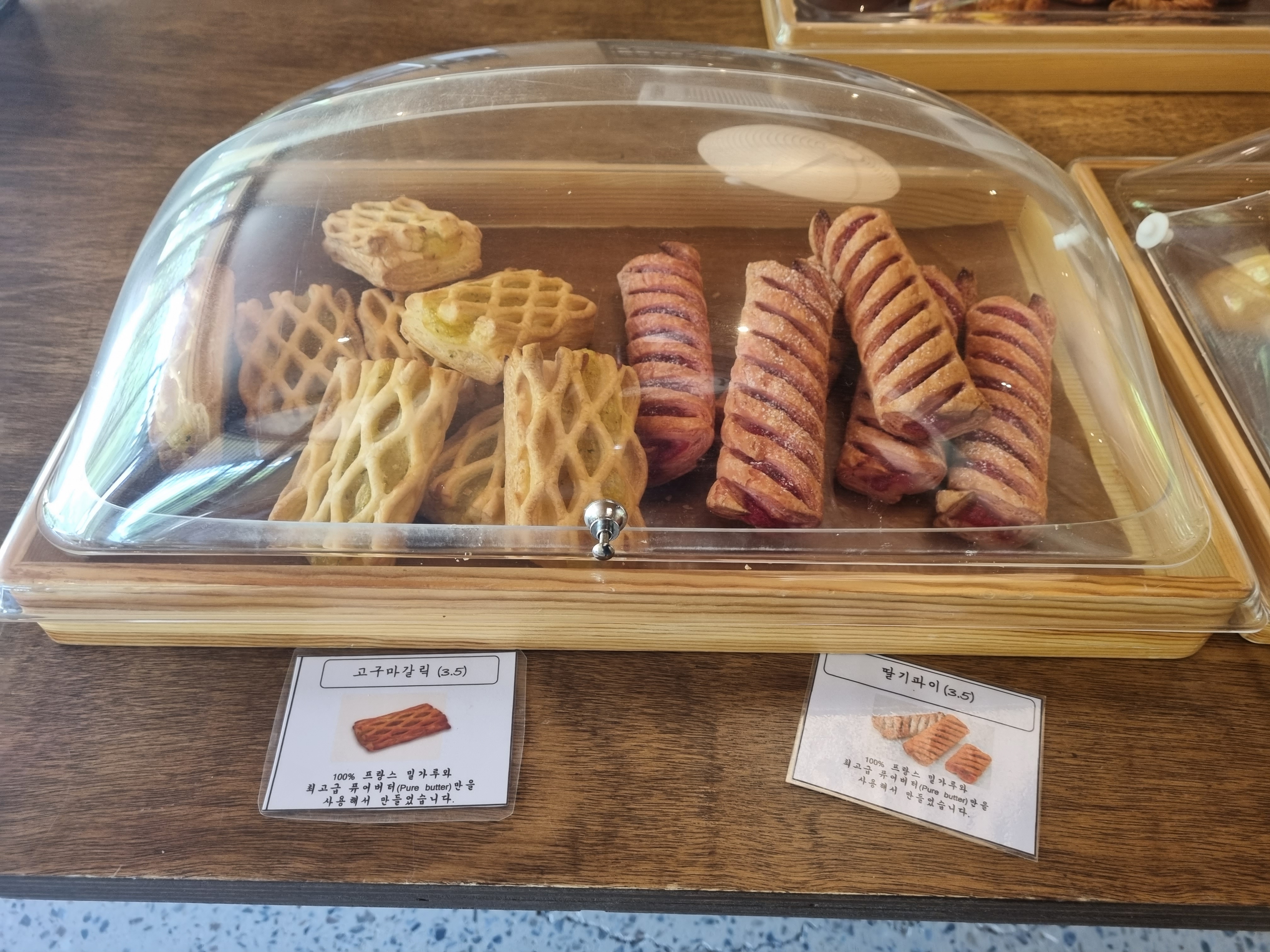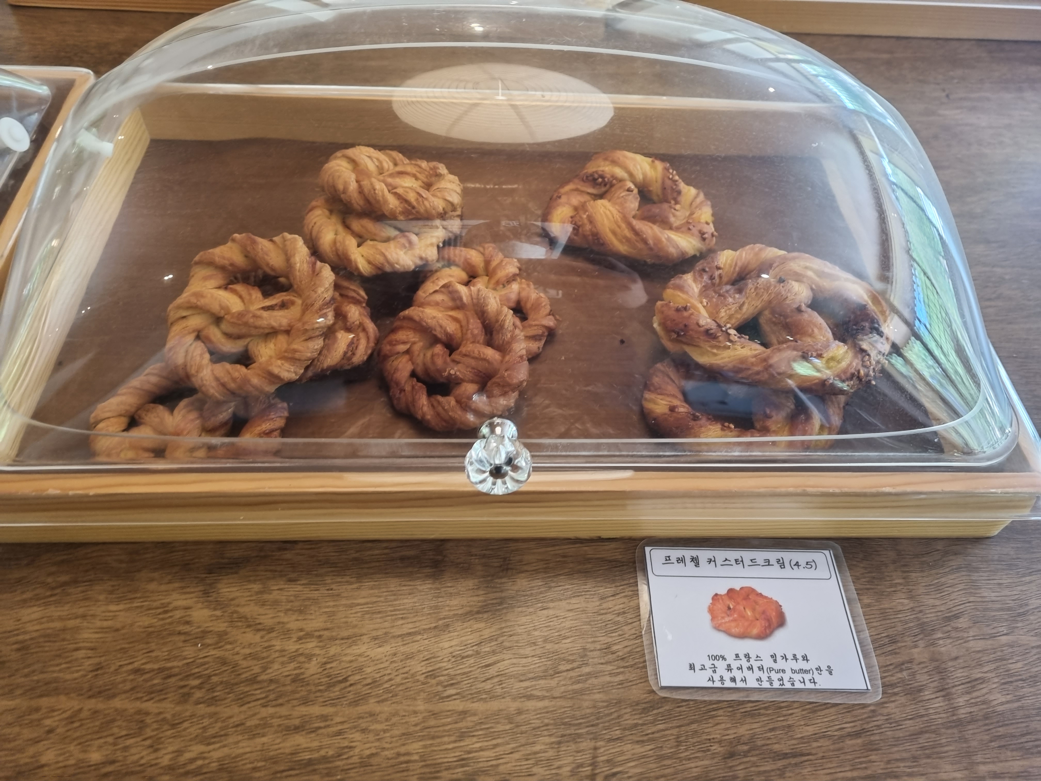 마들렌, 고구마 갈릭, 딸기파이, 프레첼 커드 터드 크림, 리프 애플 앤 커스터드 이렇게 있었습니다.