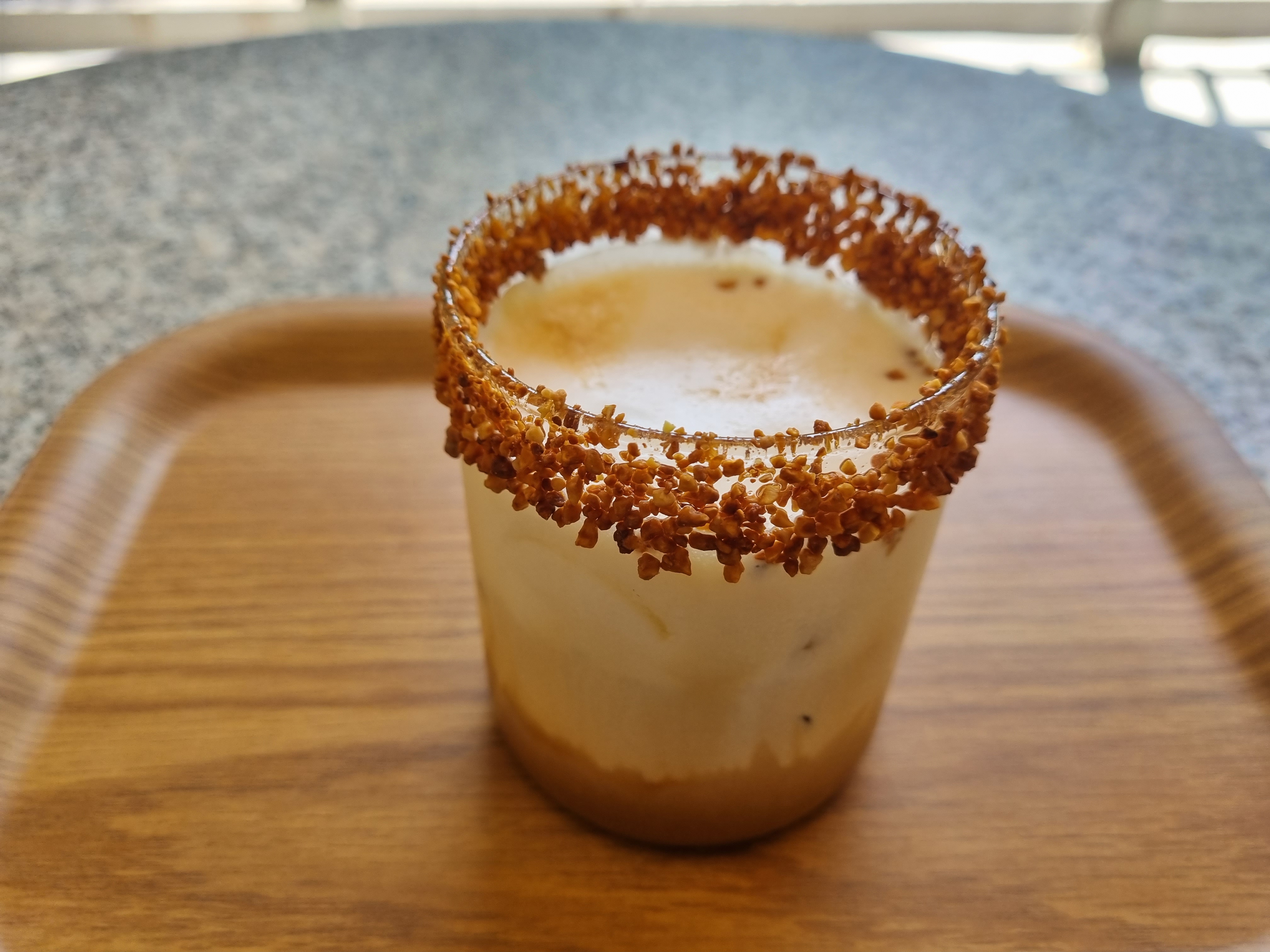양이 많지는 않았지만 달콤한 크림과 커피 그리고 컵에 붙어 있는 아몬드가 잘 어우러져 맛있었습니다.