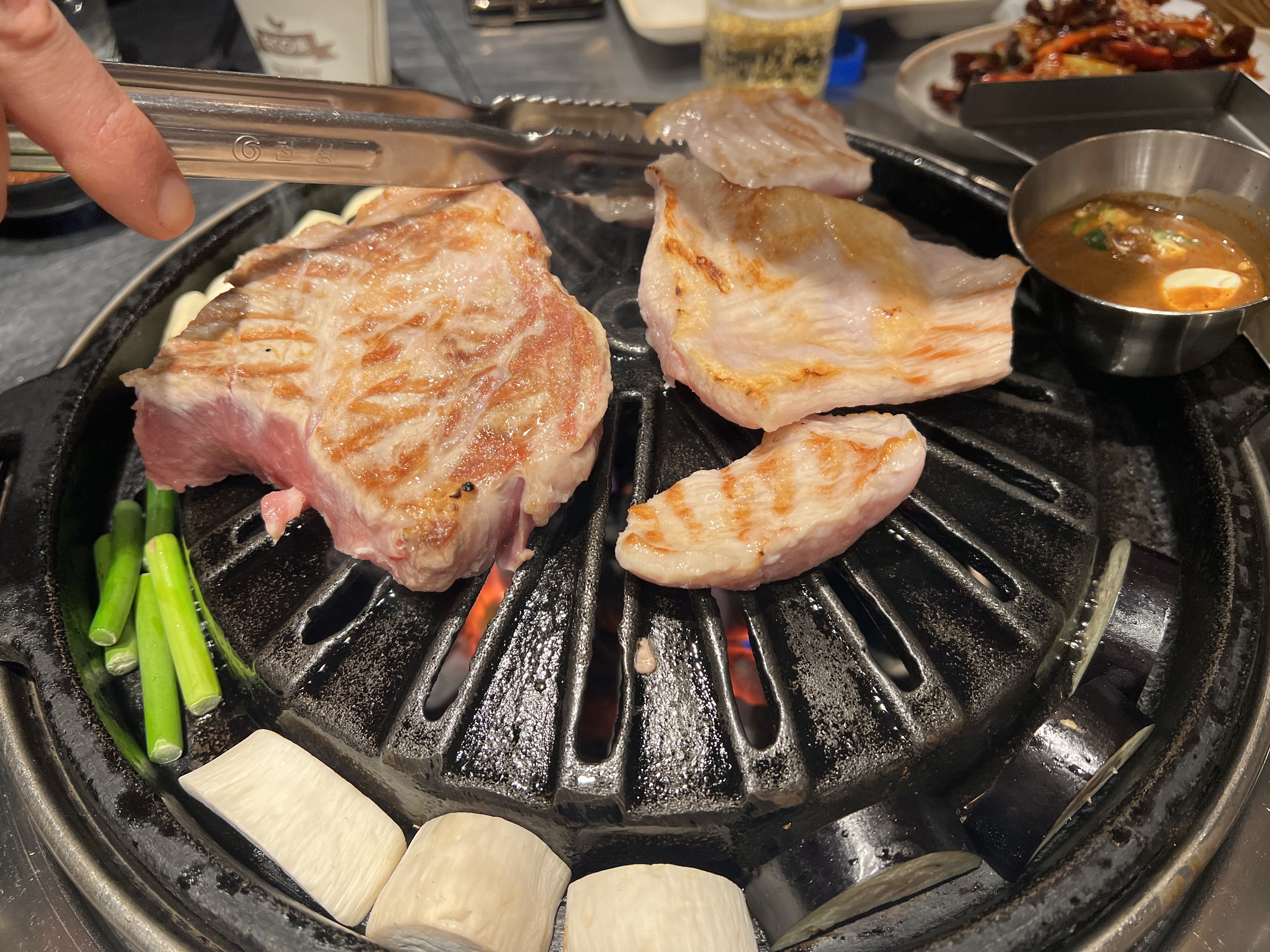 고기가 줄어가는 게 아쉬울 정도로 맛있었습니다. 목살은 육즙이 가득하고 항정살은 담백하며 부드러웠습니다. 테이블 간 간격도 적당하고 너무 시끄러운 분위기도 아니며 고기도 전문가의 손길로 맛있게 구워줘서 어느 것 하나 흠잡을 것이 없는 맛집이었습니다. 금정역에서 고기를 먹게 된다면 다시 방문할 것 같습니다.