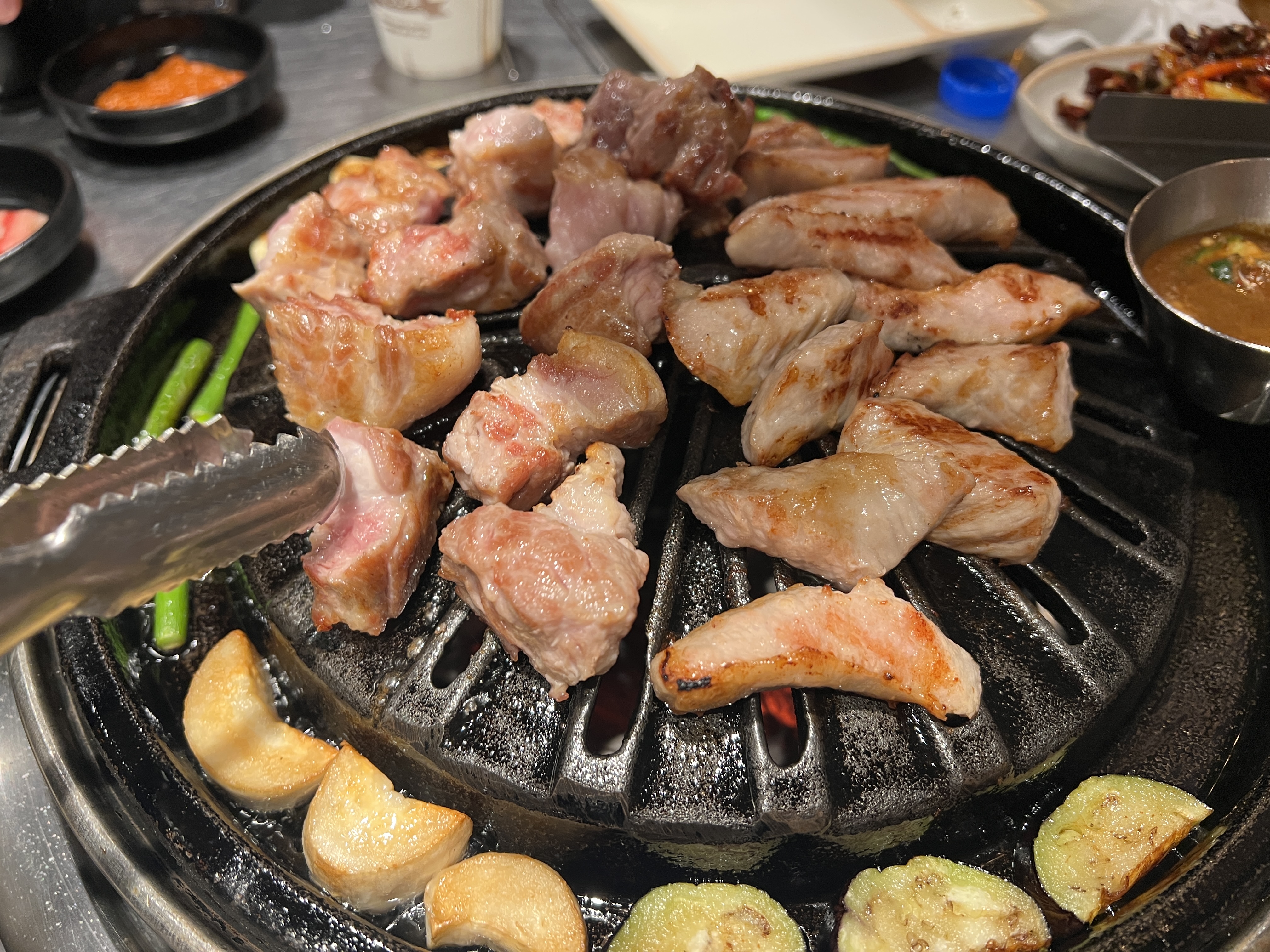 고기가 줄어가는 게 아쉬울 정도로 맛있었습니다. 목살은 육즙이 가득하고 항정살은 담백하며 부드러웠습니다. 테이블 간 간격도 적당하고 너무 시끄러운 분위기도 아니며 고기도 전문가의 손길로 맛있게 구워줘서 어느 것 하나 흠잡을 것이 없는 맛집이었습니다. 금정역에서 고기를 먹게 된다면 다시 방문할 것 같습니다.