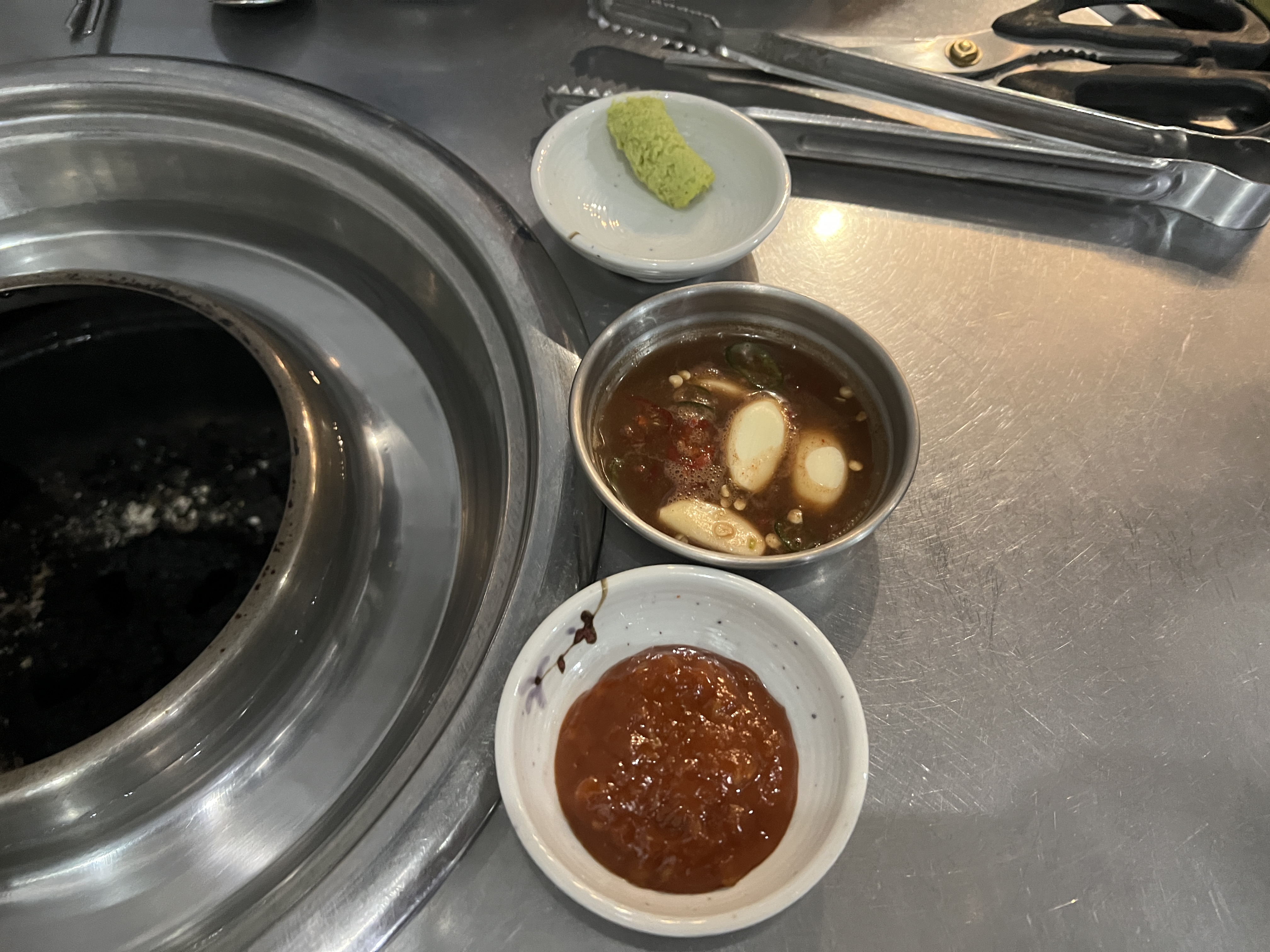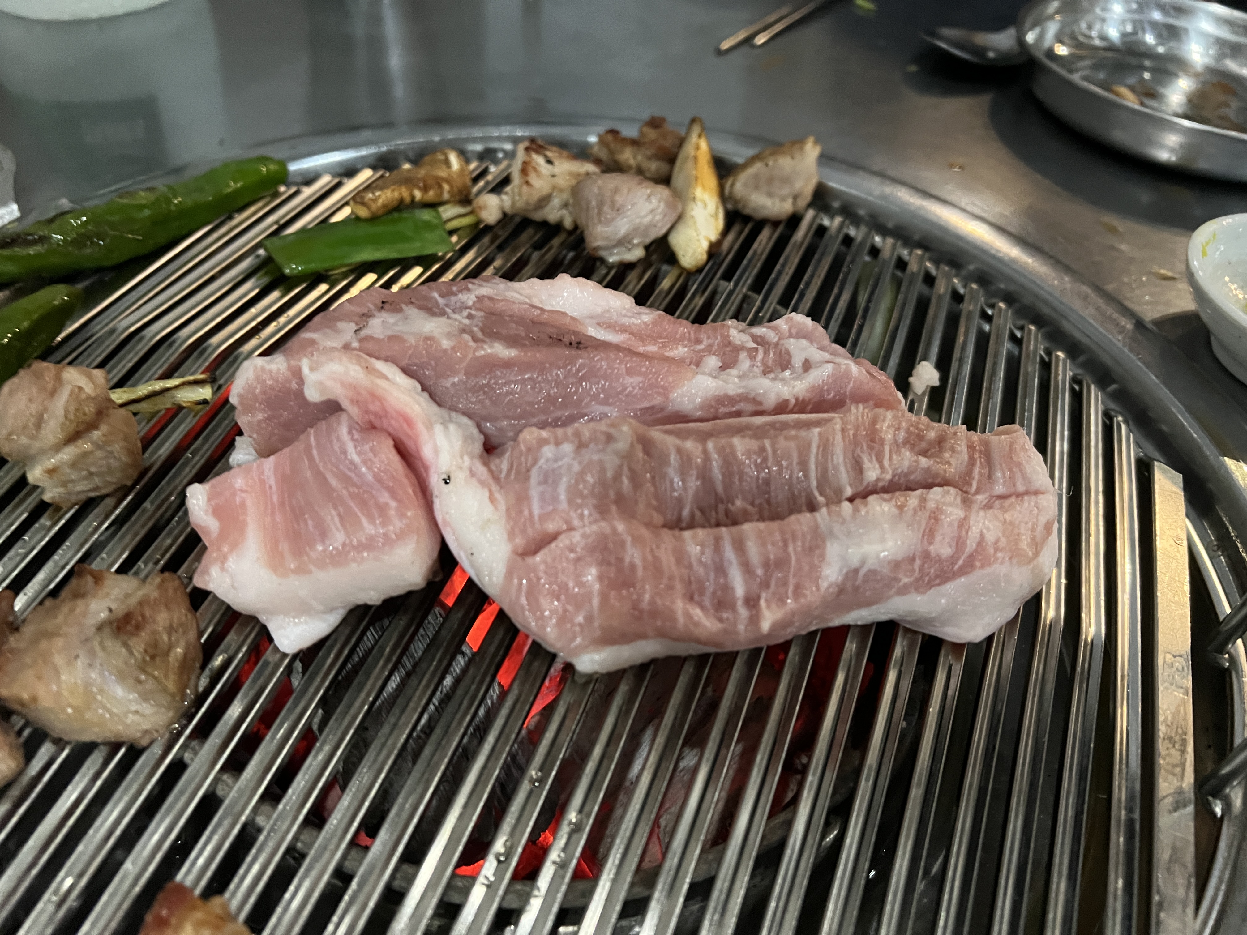 간단하지만 저 양파김치가 고기와 너무 잘 어울립니다. 몇 번을 리필했는지 모르겠습니다.
