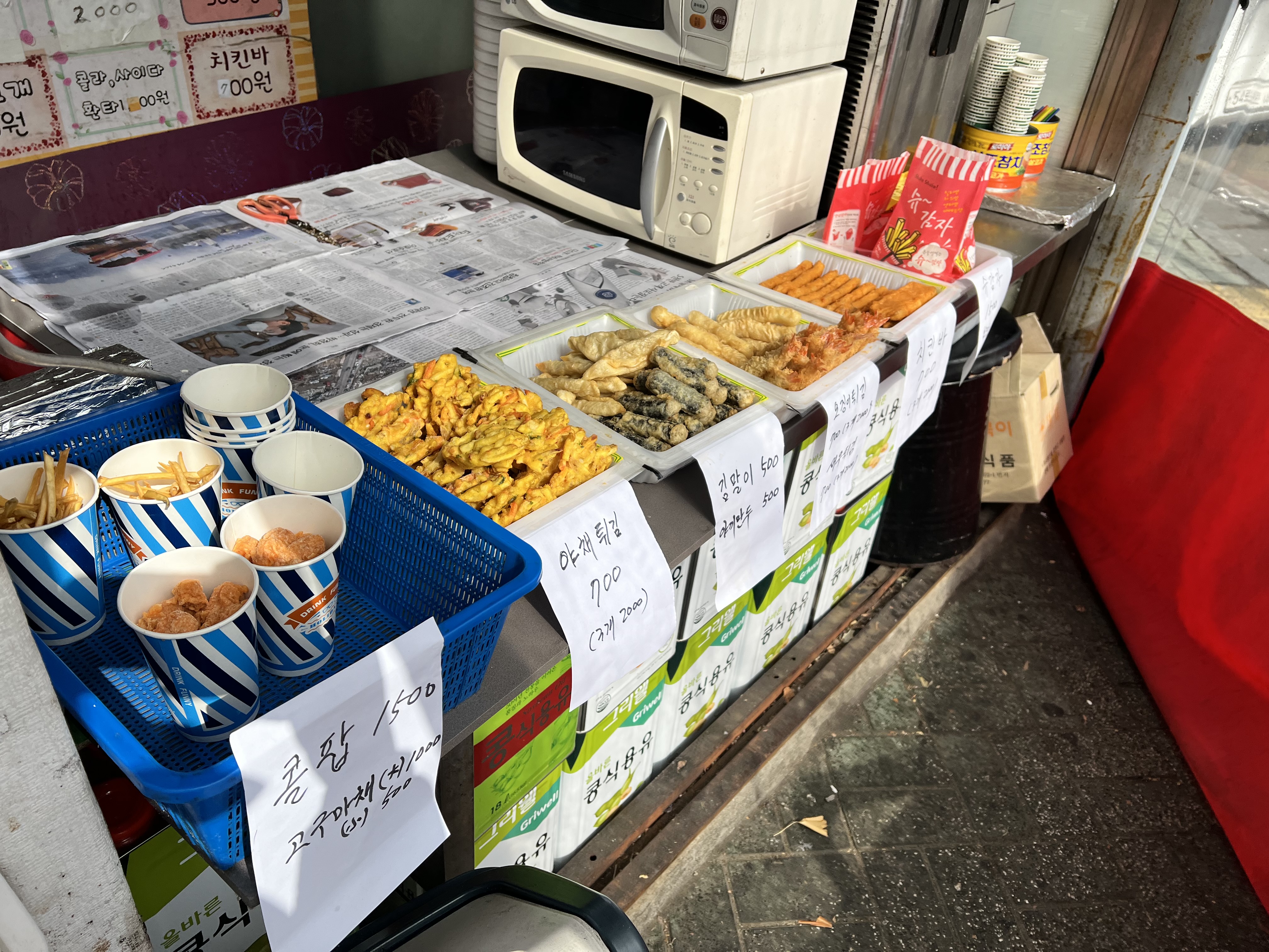 아이들이 하교시 많이 사 먹을 것 같은 위치 및 음식 배치였습니다.