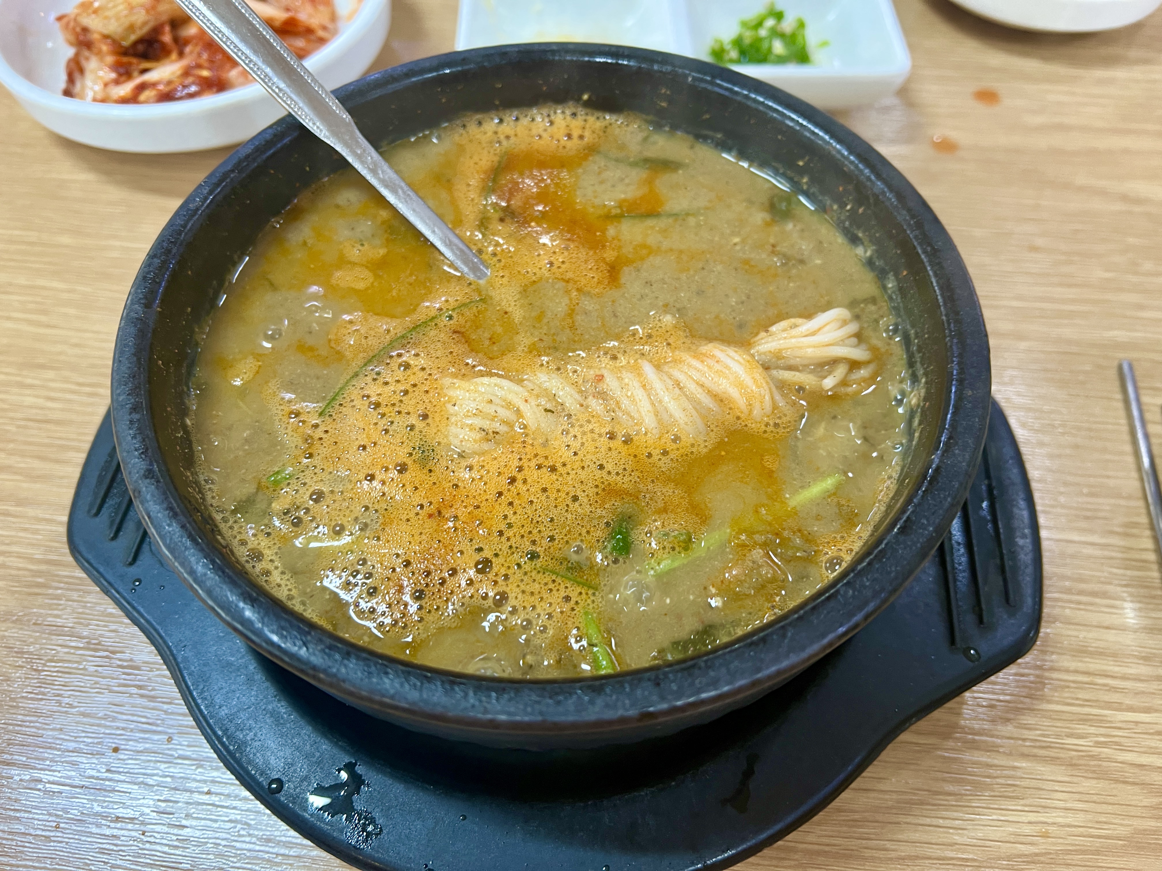 추어탕이 나왔습니다. 아주 팔팔 끓여서 나오니 너무 먹음직하였습니다. 소면을 넣어서 먹어준 후 밥까지 말아서 뚝딱!! 먹었습니다. 체인점이 보여주는 기본 맛을 뛰어넘어 진하고 간도 적당한 뭔가 보양식 한 끼를 먹은 듯한 느낌이었습니다. 항상 느끼는 것이지만 인기 있는 맛집은 이유가 있다는 걸 다시 한번 생각하게 되었습니다.