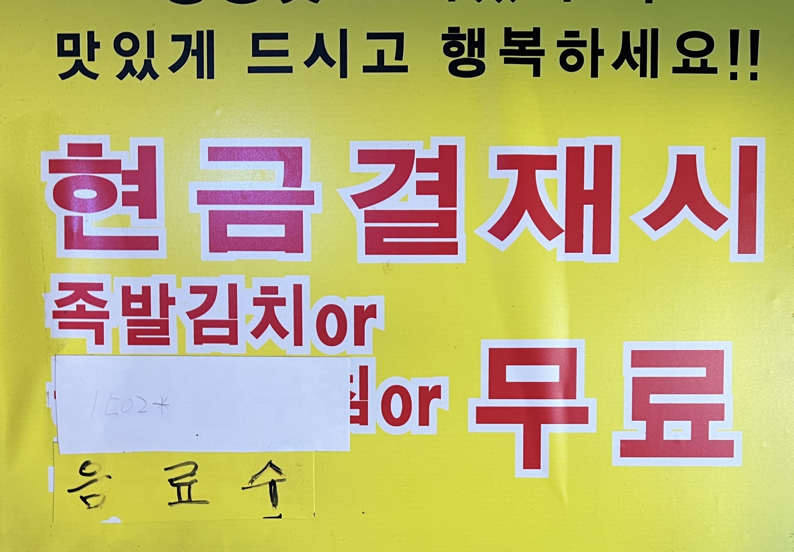 현금결제 시 족발김치 or 음료수를 무료로 제공하여 주신다고 해서 현금으로 결제하였습니다.