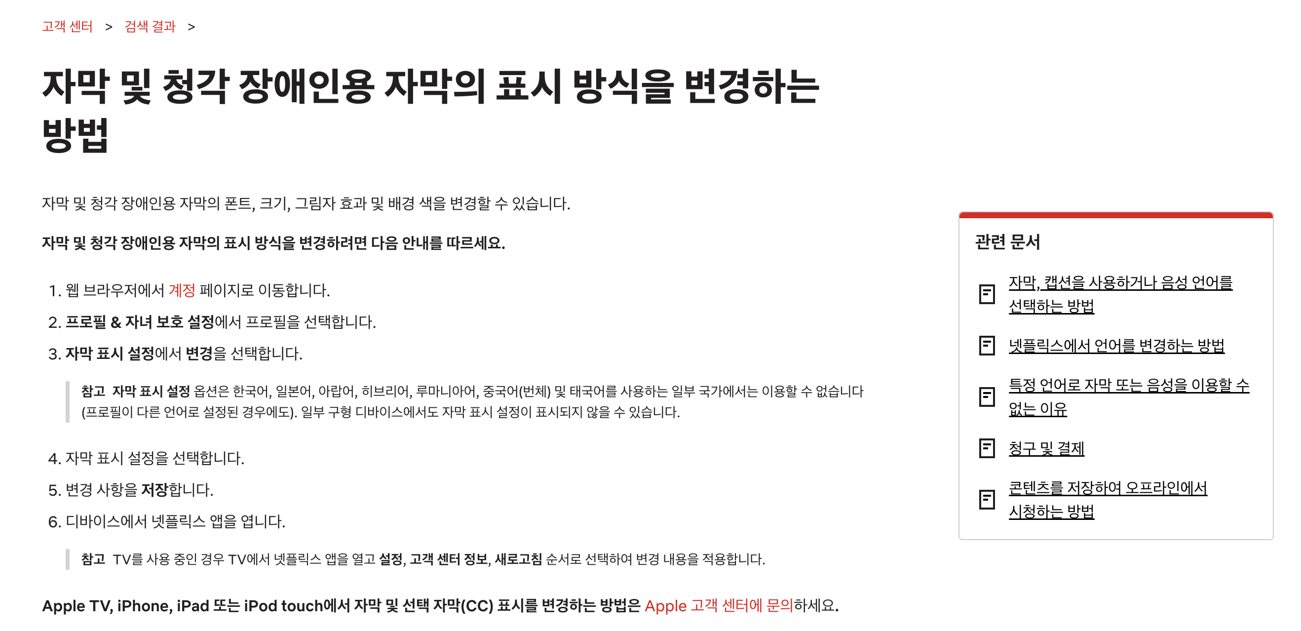 애플티브이에서 로그인 시 첫 화면에서 로딩 아이콘만 계속 돌아가는 오류라던지 넷플릭스 영상 자막 크기 조절 설정을 찾아들어가는 법 등입니다.