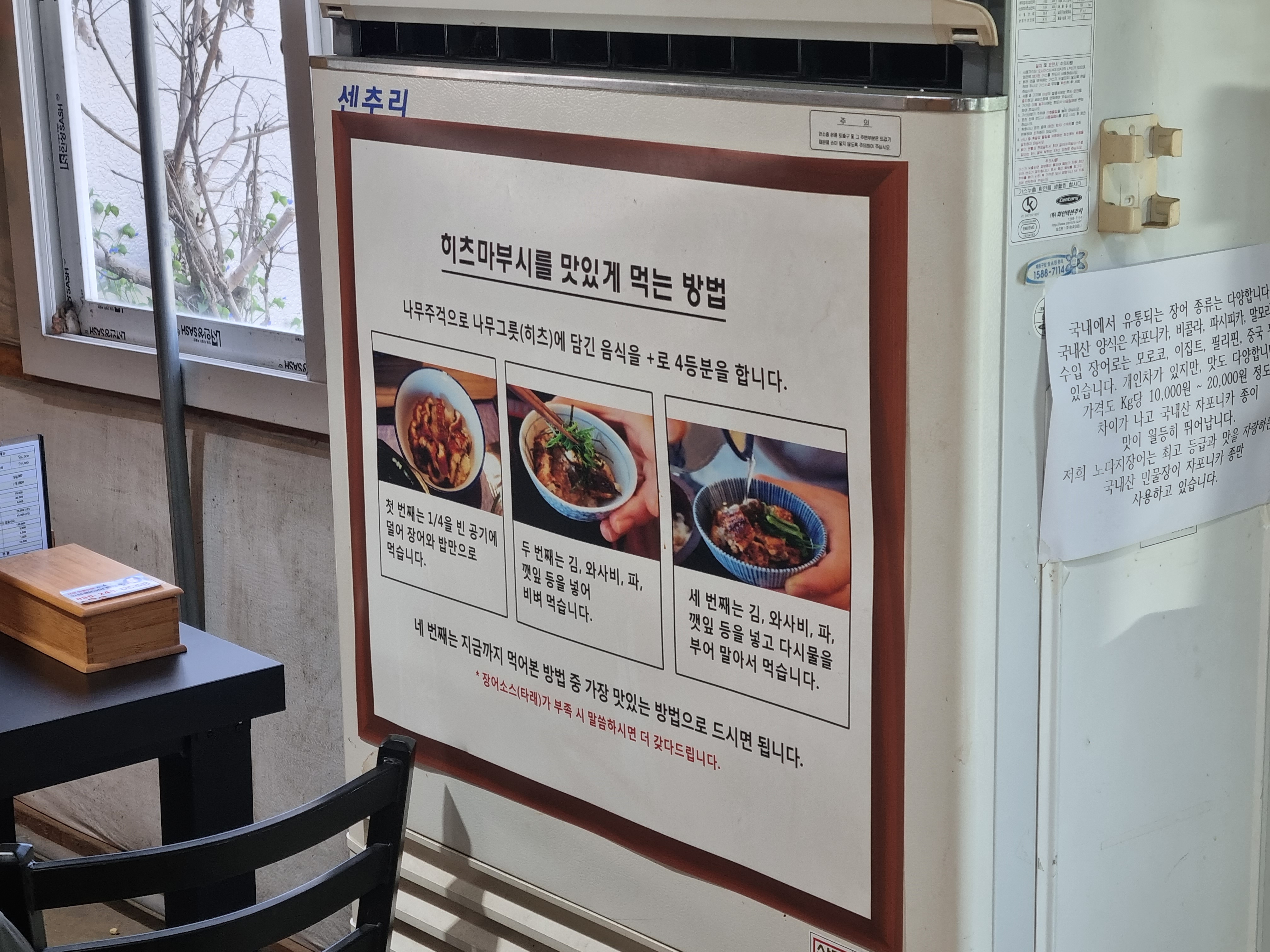 양평 장어덮밥 맛집인 노다지장어 답게 히츠마부시를 맛있게 먹는 방법이 한편에 적혀있습니다.