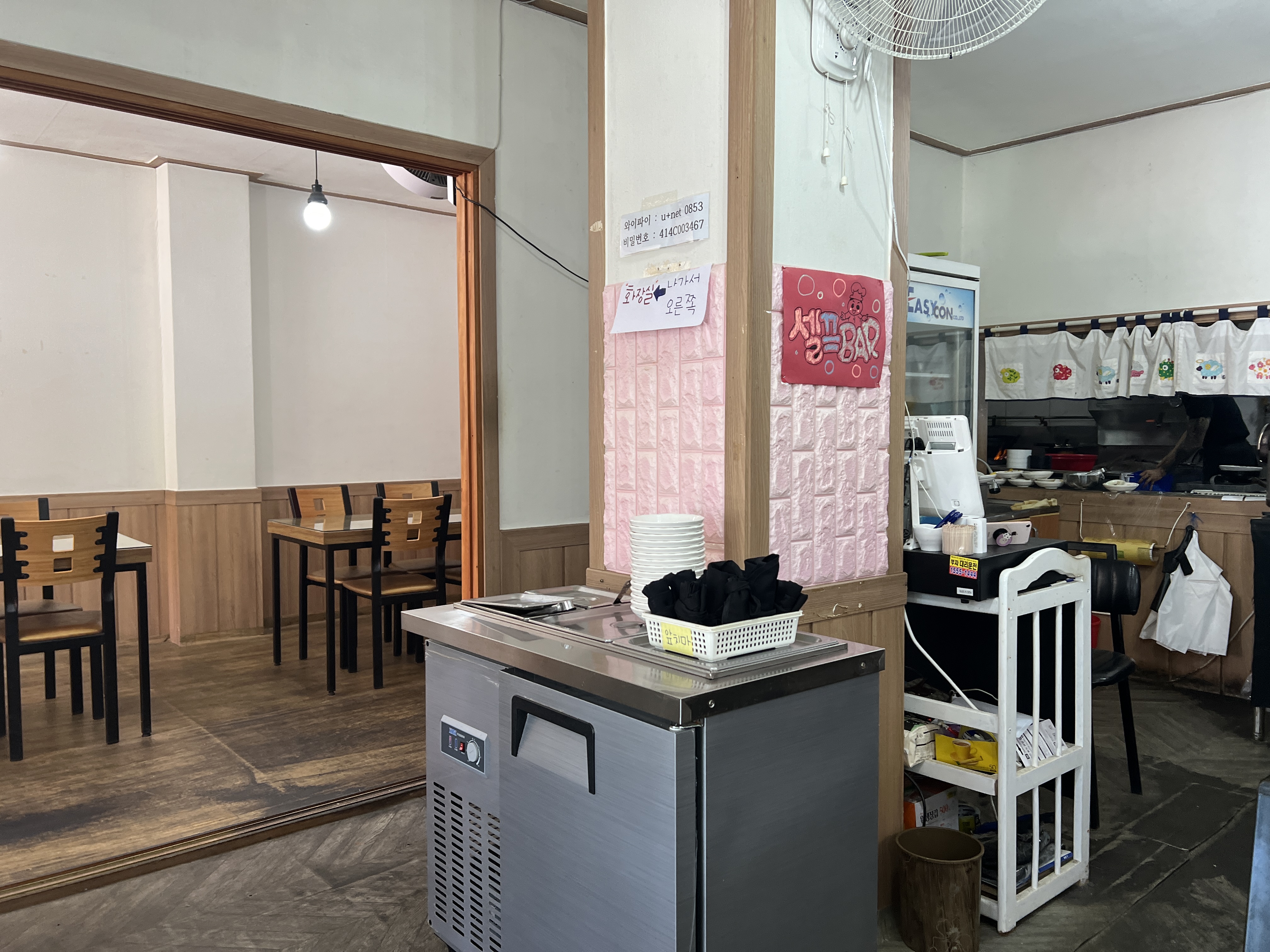 밖에서 보이는 것보다 내부 공간이 넓고 단무지와 양파를 셀프바에서 직접 가져다 먹을 수 있는 것이 좋았습니다.