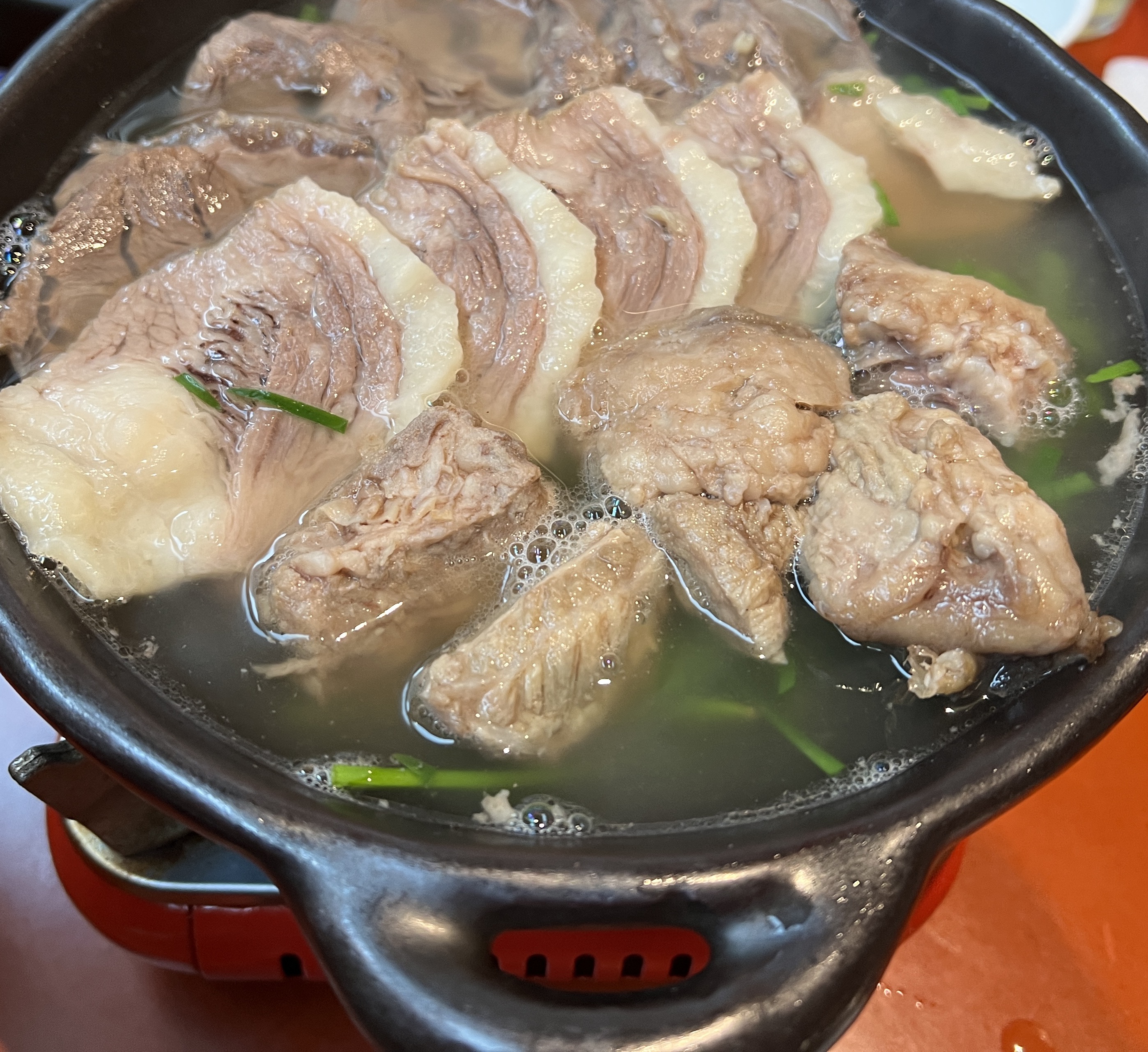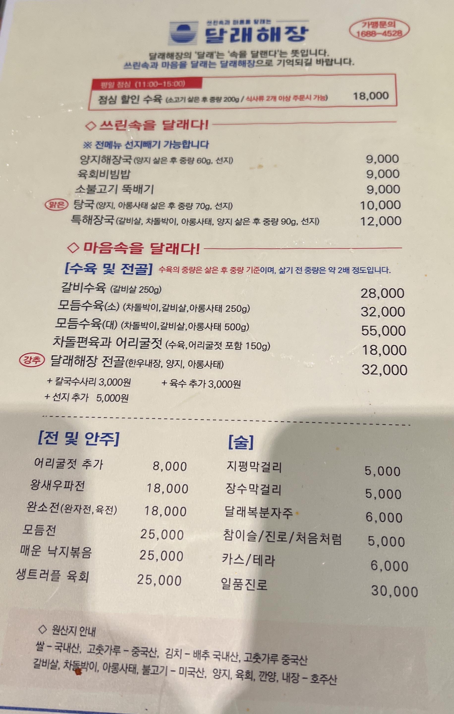 일단 웨이팅 한 게 아까워서 맑은 탕국, 모듬수육(소), 달래해장 전골을 주문하였습니다.
