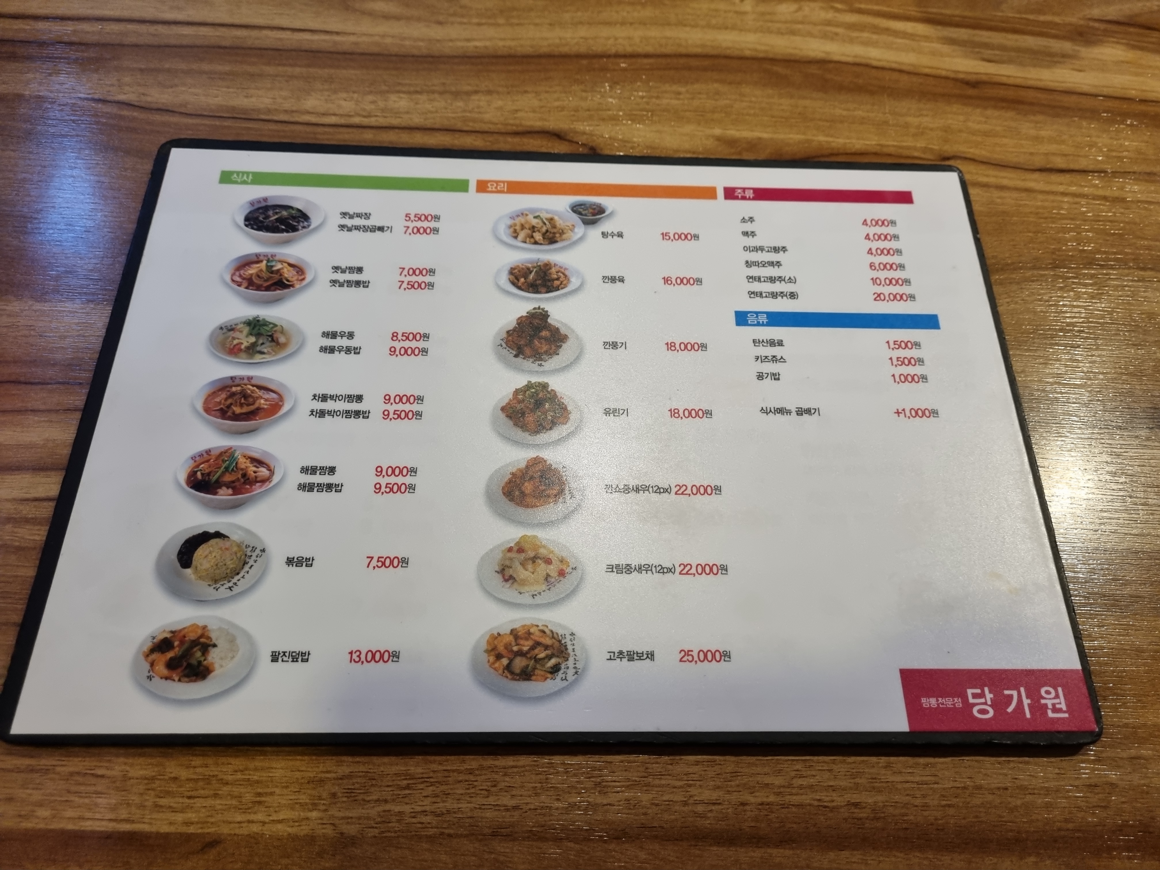 부천 범박 짬뽕 맛집 당가원 범박점 자리에 앉아서 테이블에 있는 메뉴판을 봤습니다.