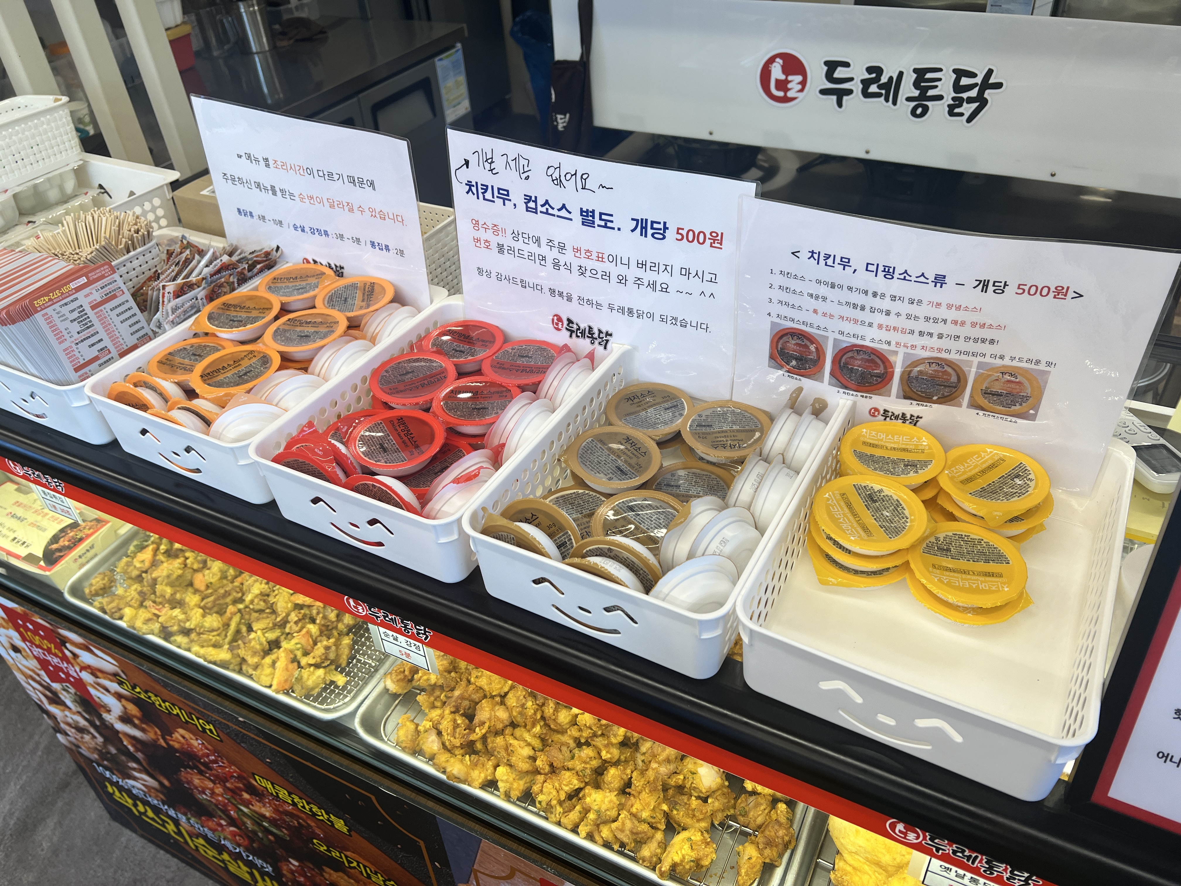 가격이 저렴하다 보니 치킨무나 기타 소스는 500원을 주고 추가해야 합니다.