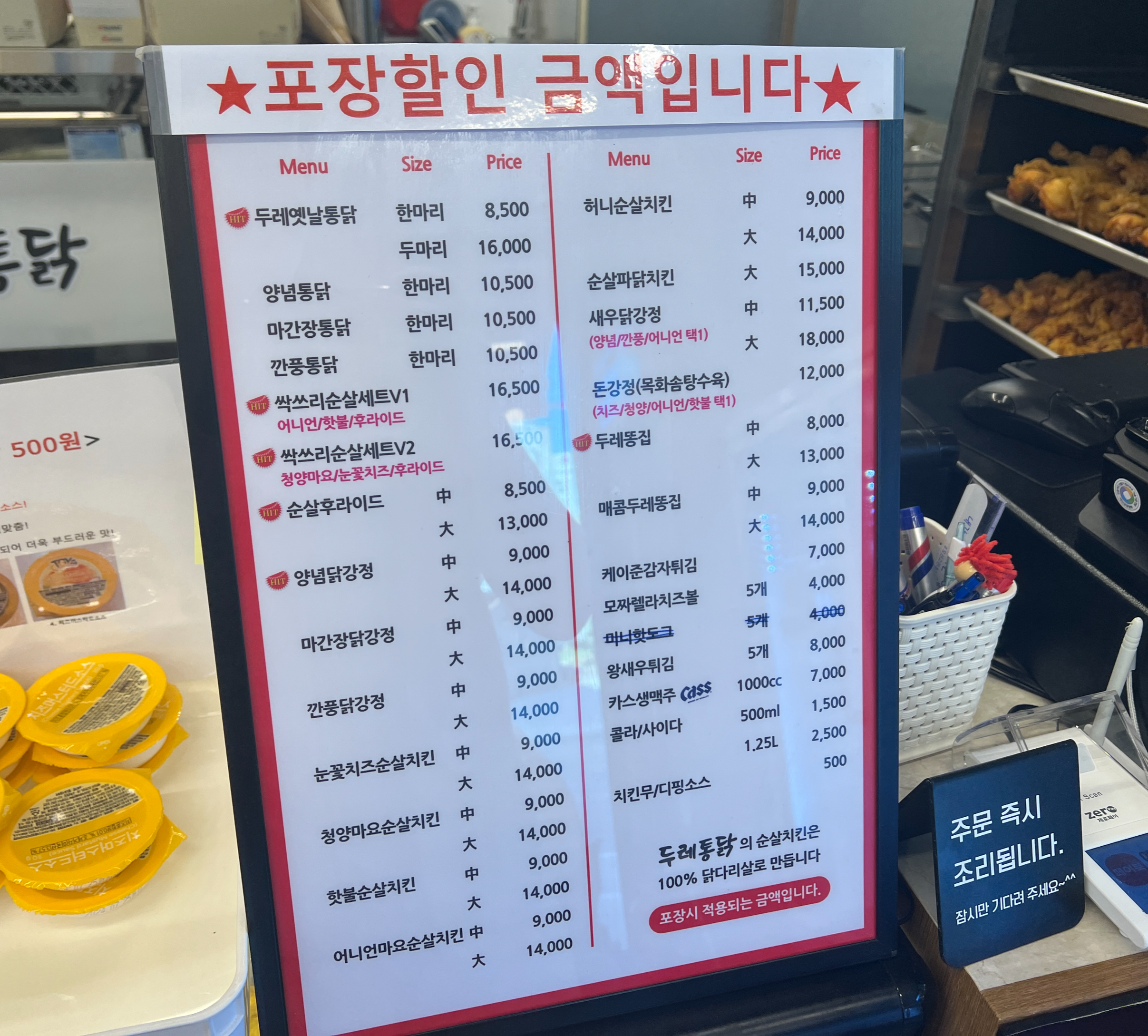 (메뉴의 가격은 포장 시 금액인 점 참고해 주세요~)