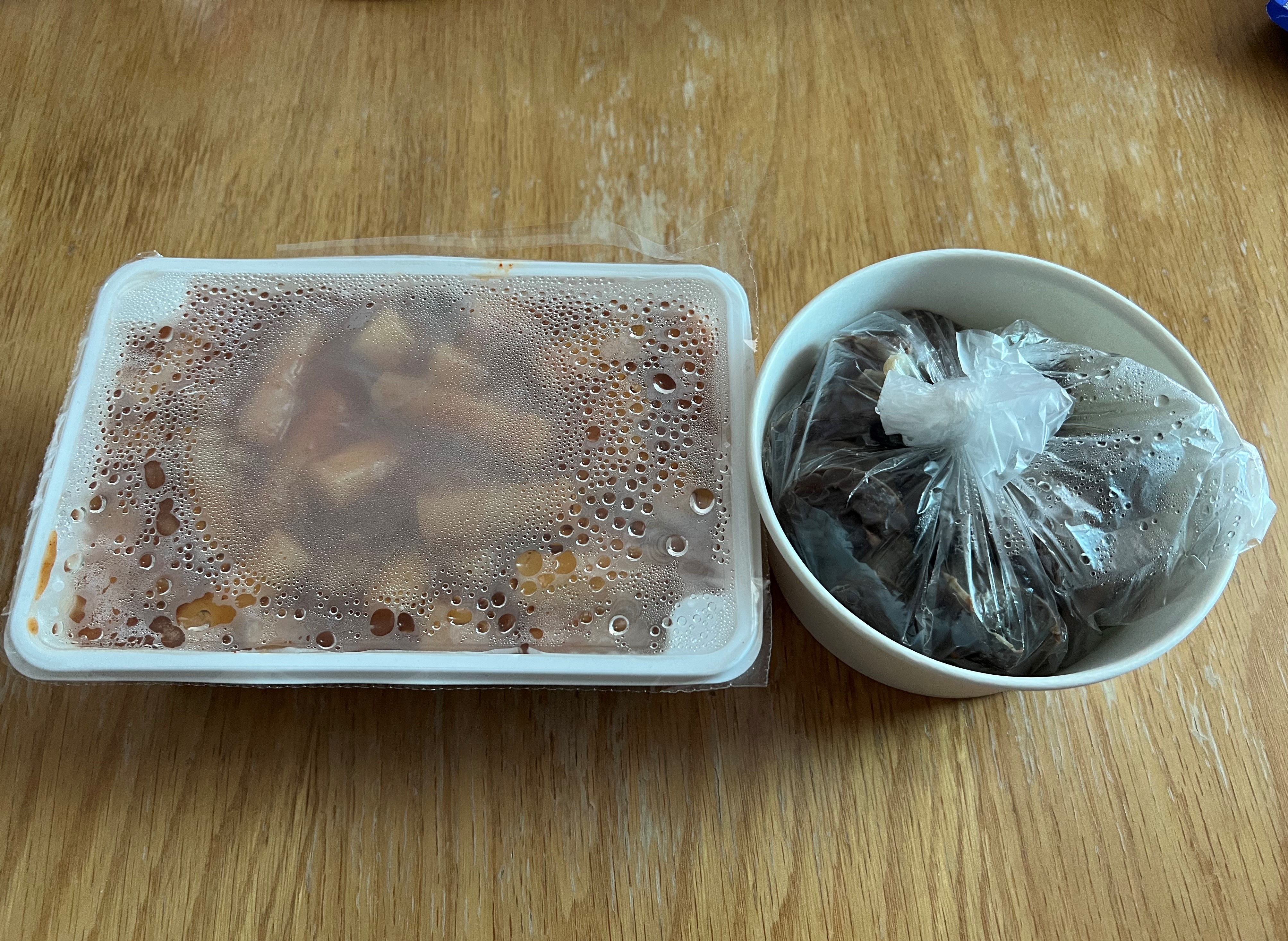 마늘떡볶이 4천원어치와 순대 1인분을 포장하였습니다.