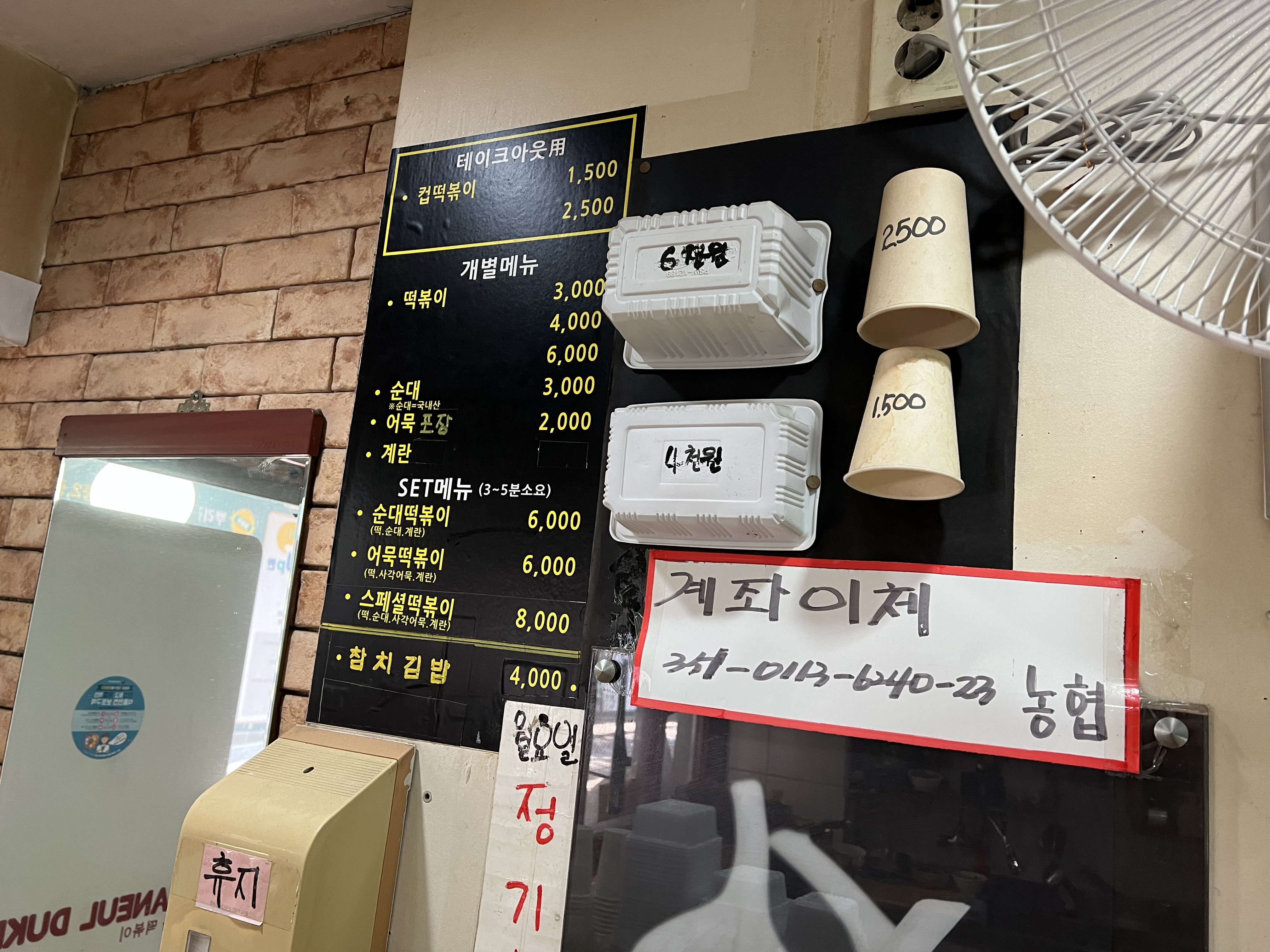 떡볶이 가격별 포장용기가 부착되어 있는 게 재밌었습니다.