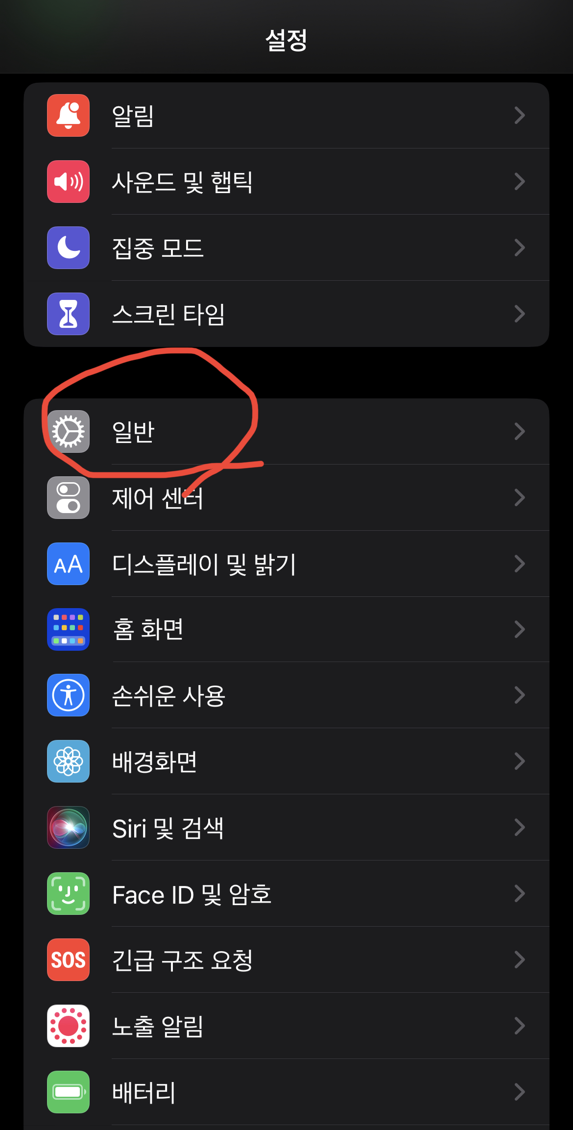1. 설정 -> 일반 메뉴로 이동