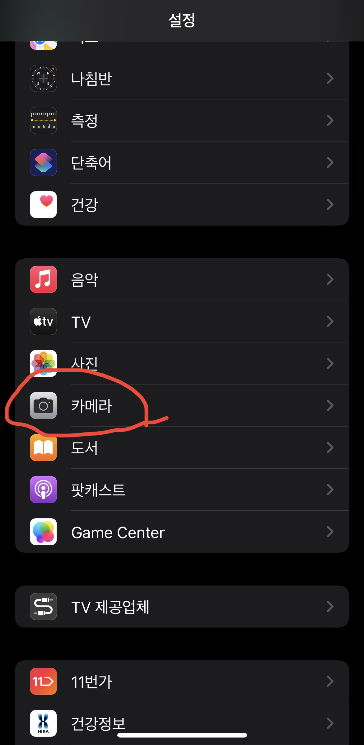 1. 아이폰 "설정" -> "카메라"를 터치해줍니다.
