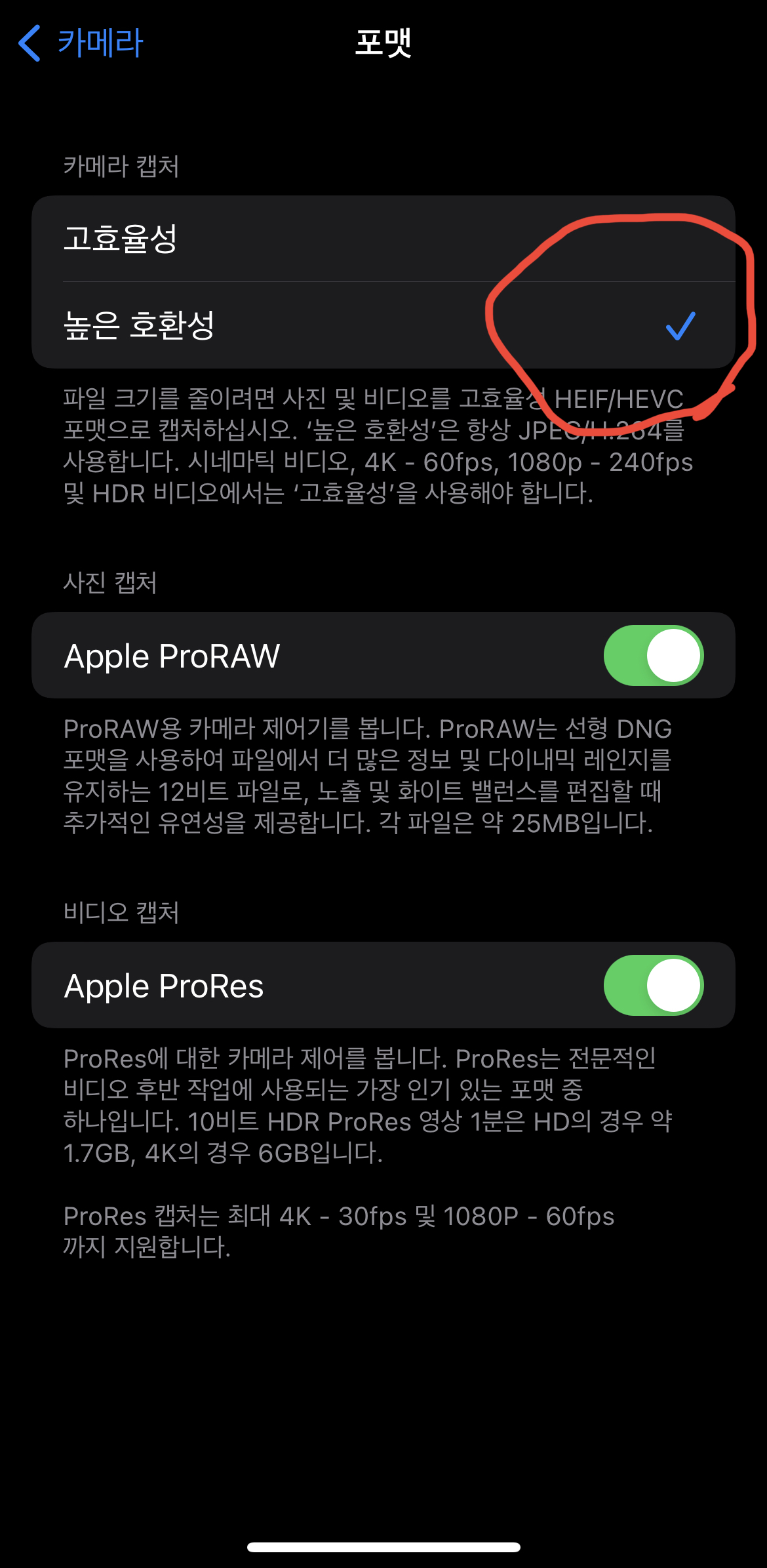 이렇게만 설정해주시면 아이폰으로 촬영하는 사진이 JPG 포맷으로 저장되어 에어드롭을 통해 맥북으로 이동시킨 후 티스토리 블로그 글 작성 시 포맷 변환 없이 사용하실 수 있습니다.