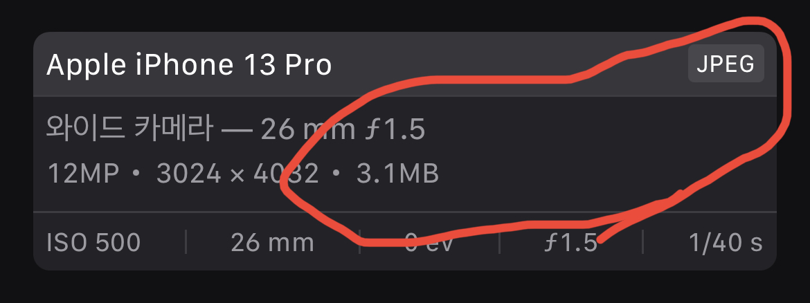 사진의 경우에는 HEIF와 JPEG 포맷의 용량 차이는 크지 않았습니다.