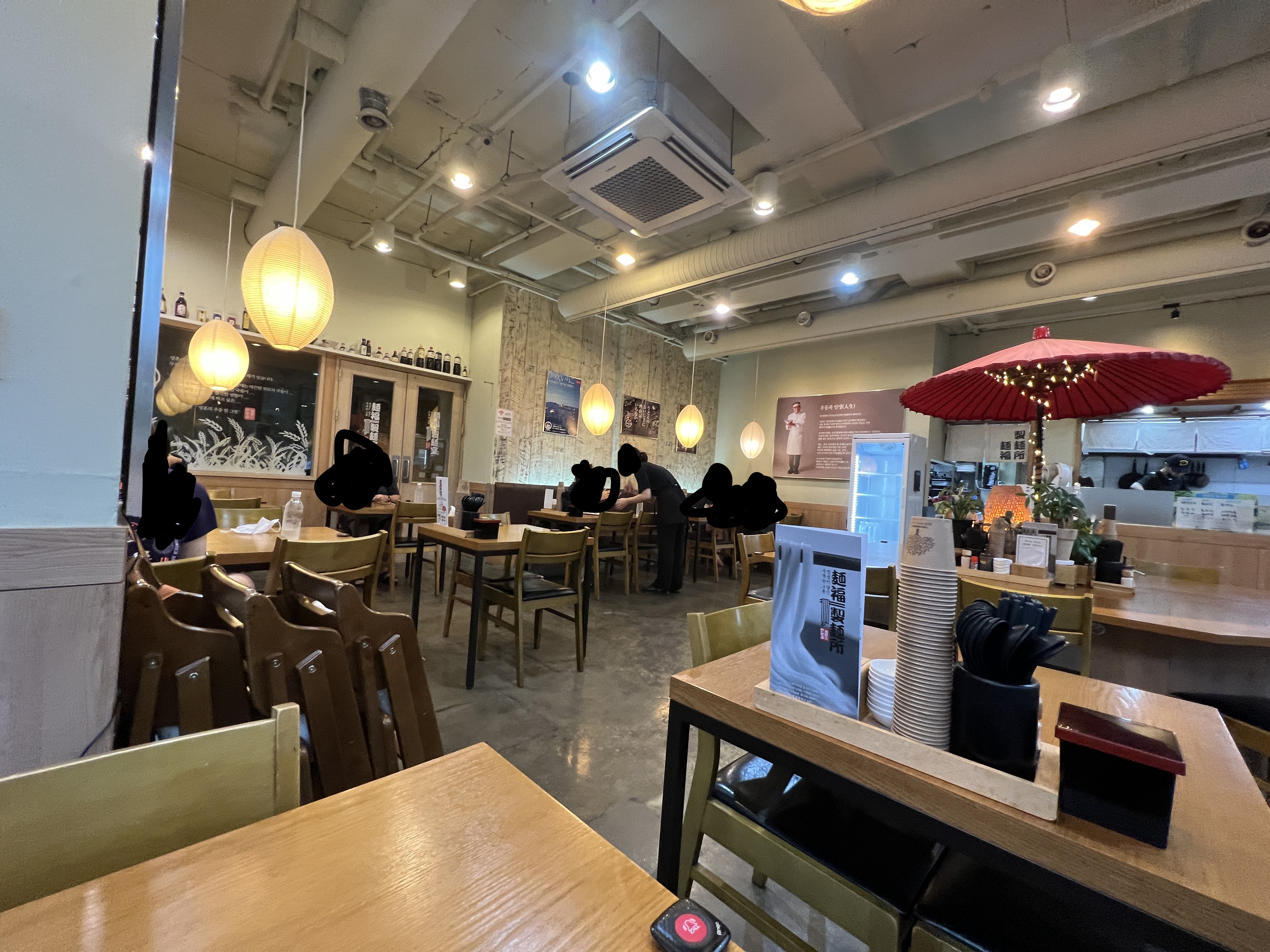제 입맛에는 맞지 않았지만 우동을 기본으로 한 다양한 호불호 적은 메뉴들로 점심시간이 가까워지니 테이블이 가득 찼습니다.