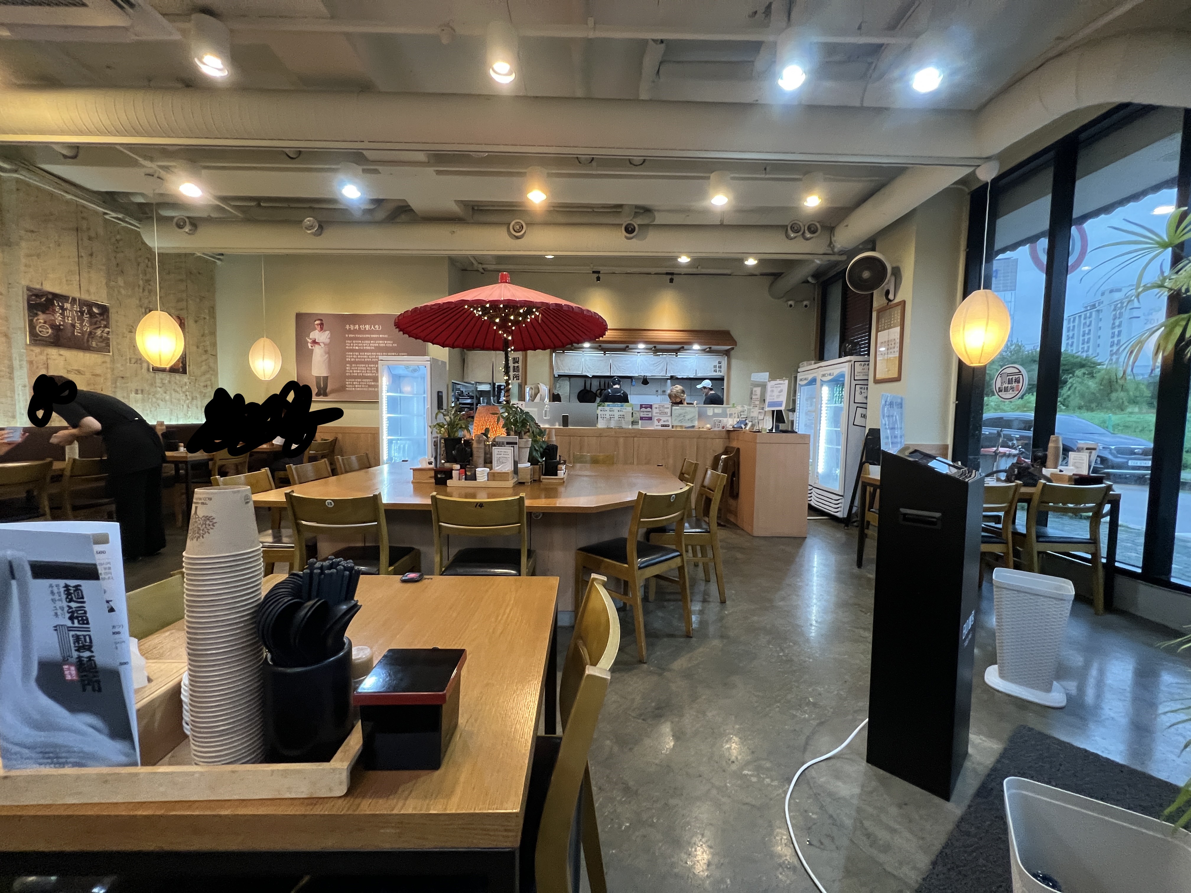 제 입맛에는 맞지 않았지만 우동을 기본으로 한 다양한 호불호 적은 메뉴들로 점심시간이 가까워지니 테이블이 가득 찼습니다.