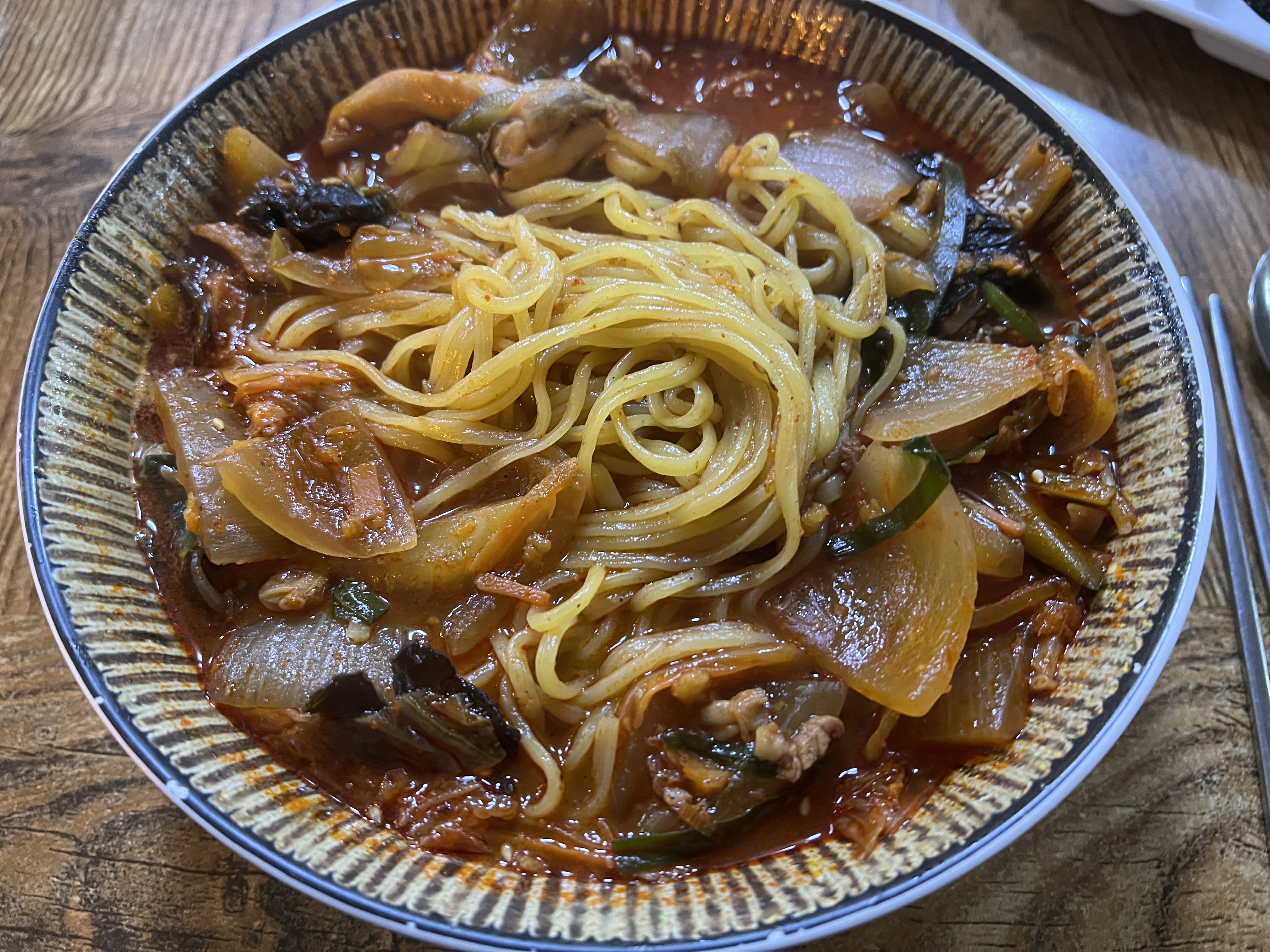 가격은 1,000원 올랐지만 면과 건더기가 곱배기 양인 것 같습니다. 양이 굉장히 많기 때문에 1,000원 인상이 크게 와닿지 않았습니다. 게다가 요즘 무료로 제공하던 공깃밥도 유료로 전환하는 곳이 많은데 아직도 밥을 무료로 제공해 주기 때문에 가격이 인상되어도 고마울 따름입니다.