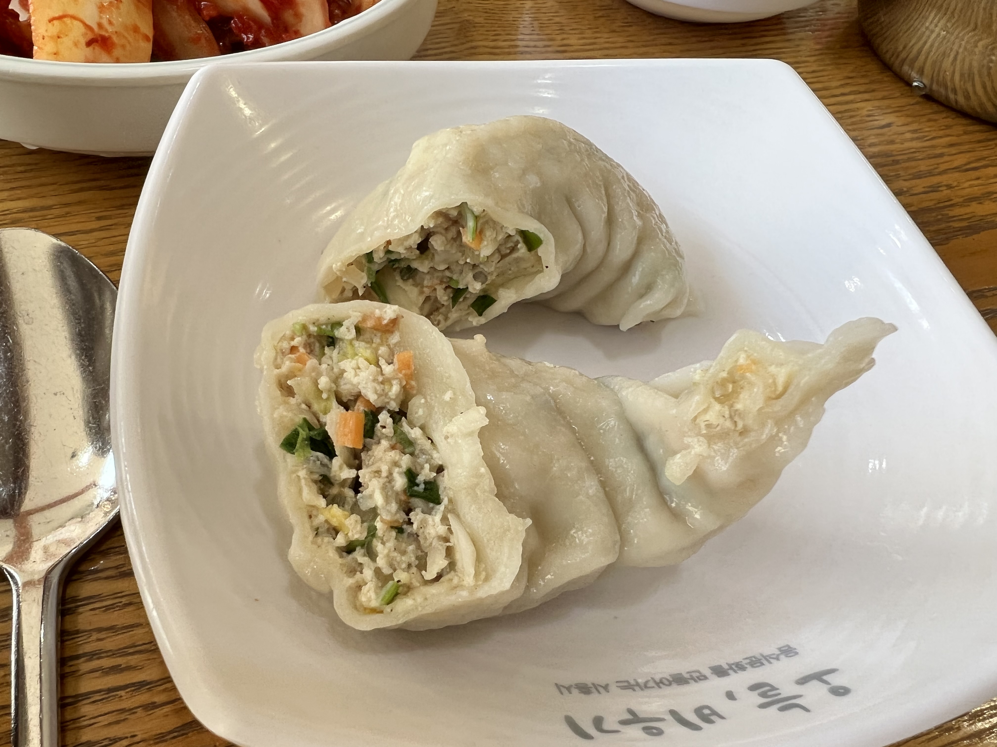 한 가지 팁을 드리자면 앞접시에 만두를 놓고 가위로 반을 자른 후 숟가락으로 간장을 올려 드시면 맛있습니다.
