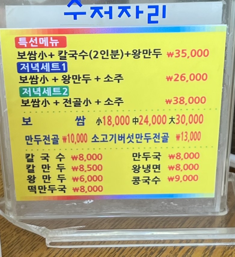 칼국수, 만두국, 냉면, 콩국수가 주력 메뉴입니다.