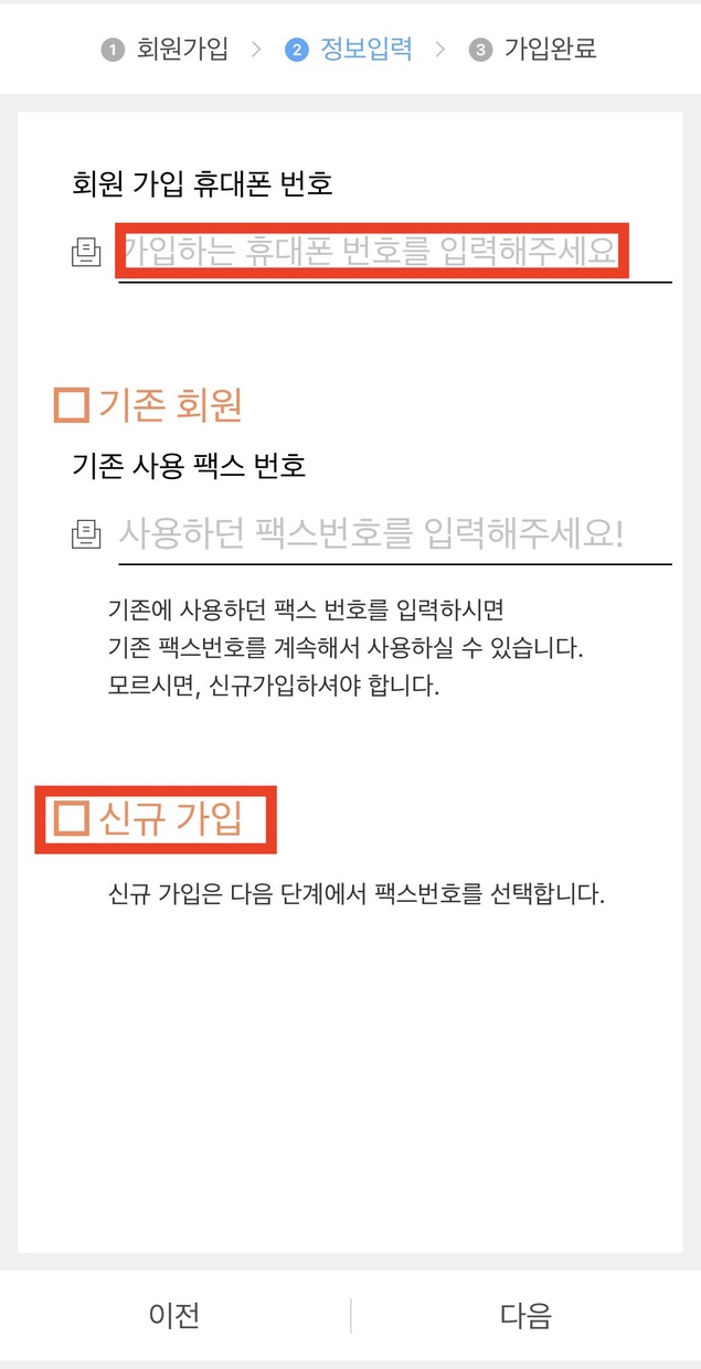 3. 휴대폰 번호를 입력 후 신규가입에 체크를 합니다.