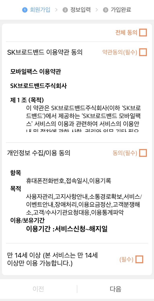 3. 휴대폰 번호를 입력 후 신규가입에 체크를 합니다.