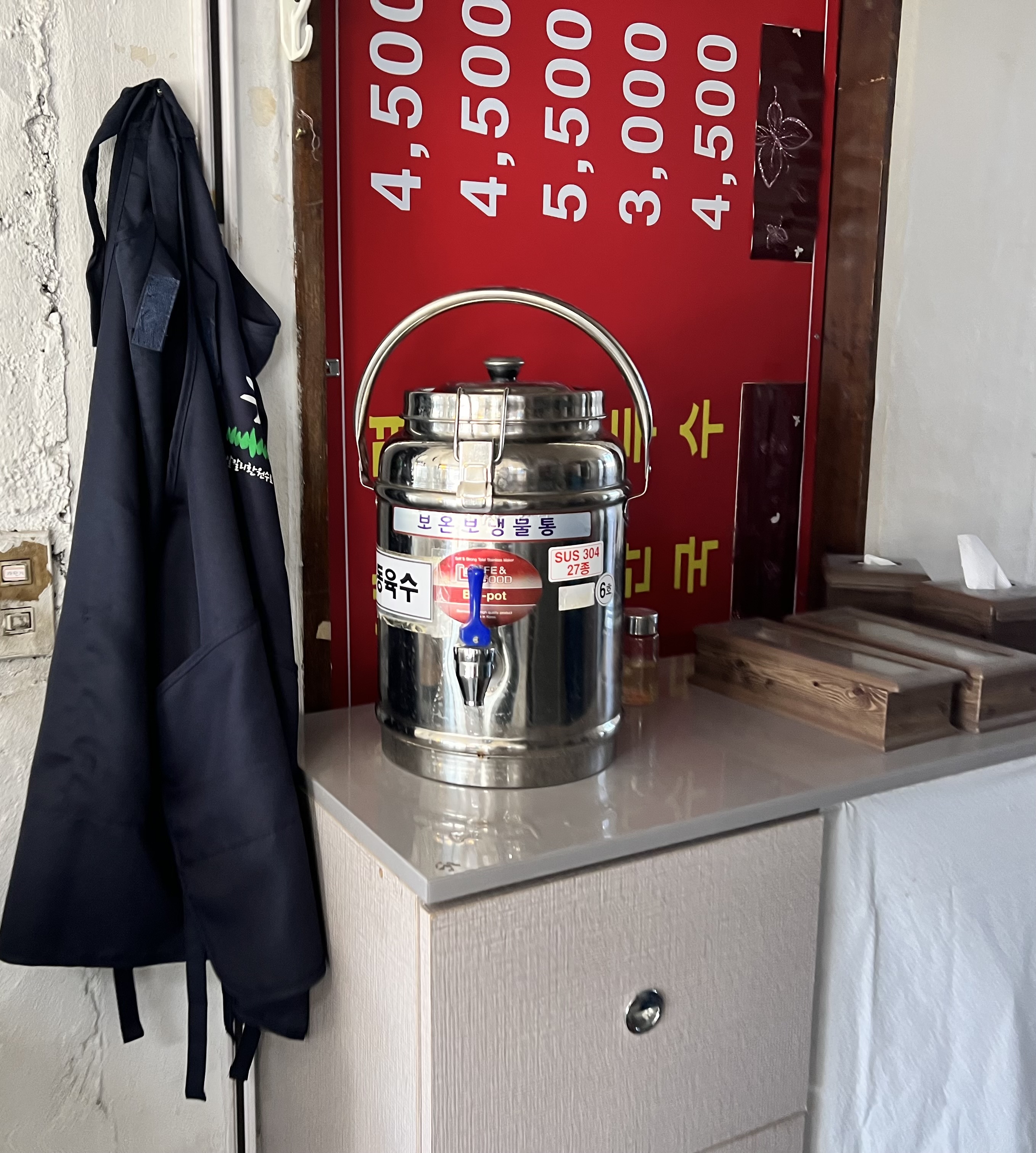 기본으로 육수만 제공되고 차가운 물을 마시고 싶으면 셀프로 가져야 드셔야 합니다.
