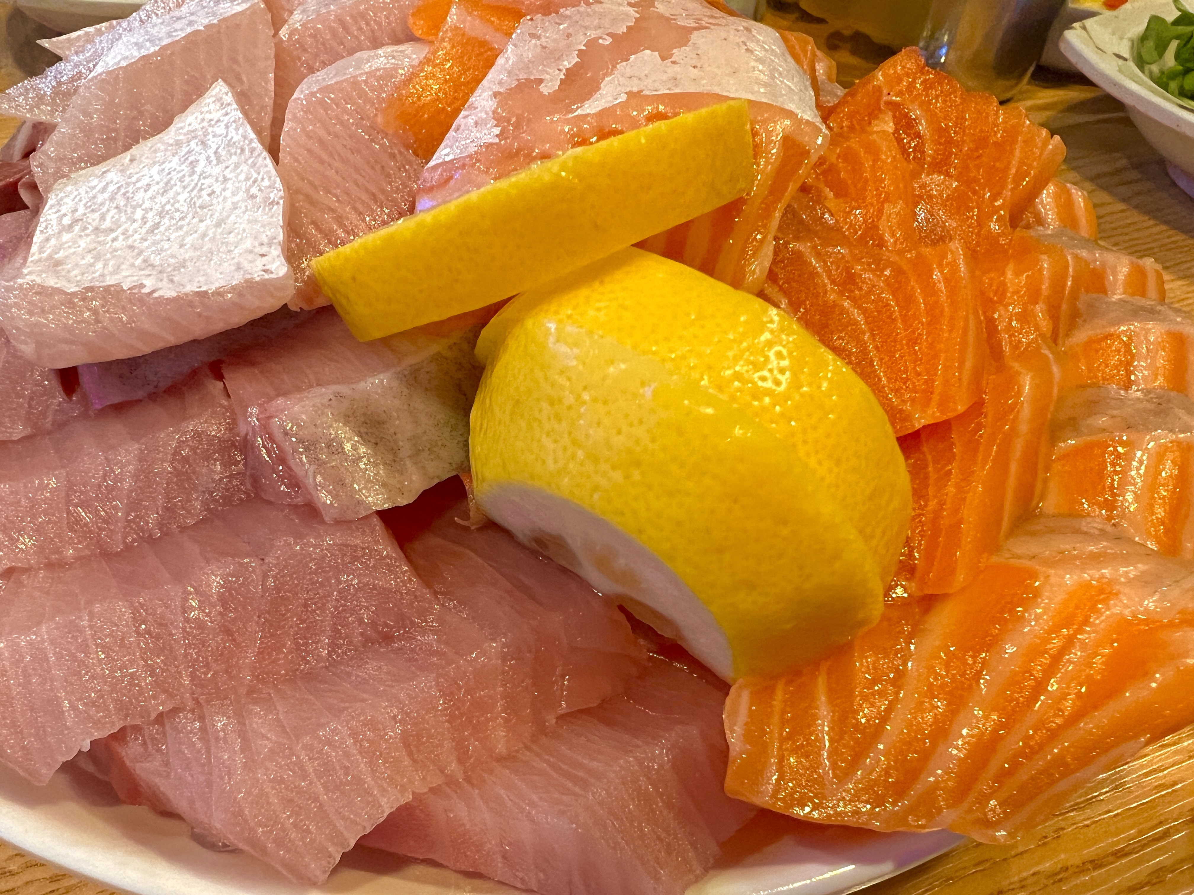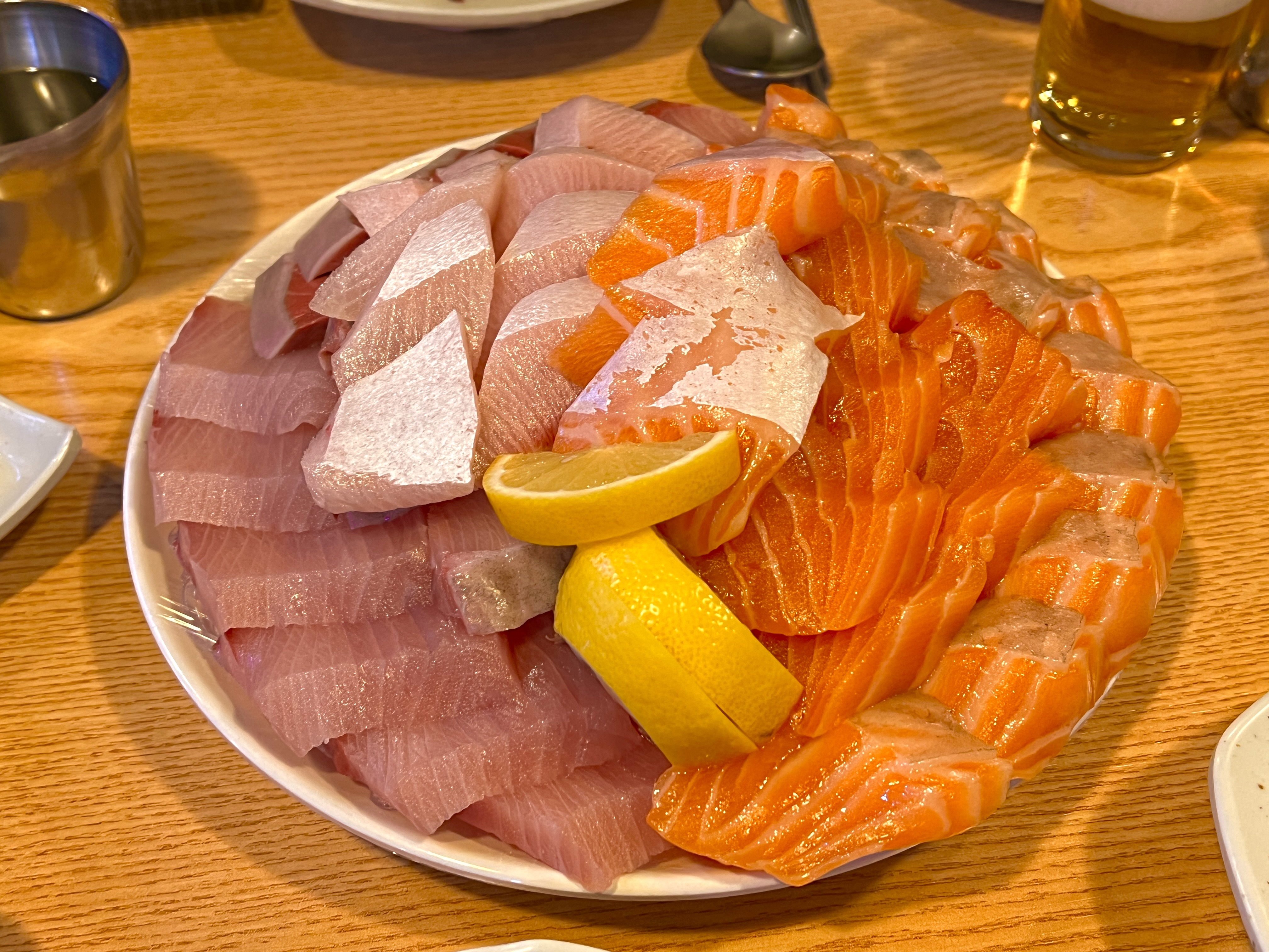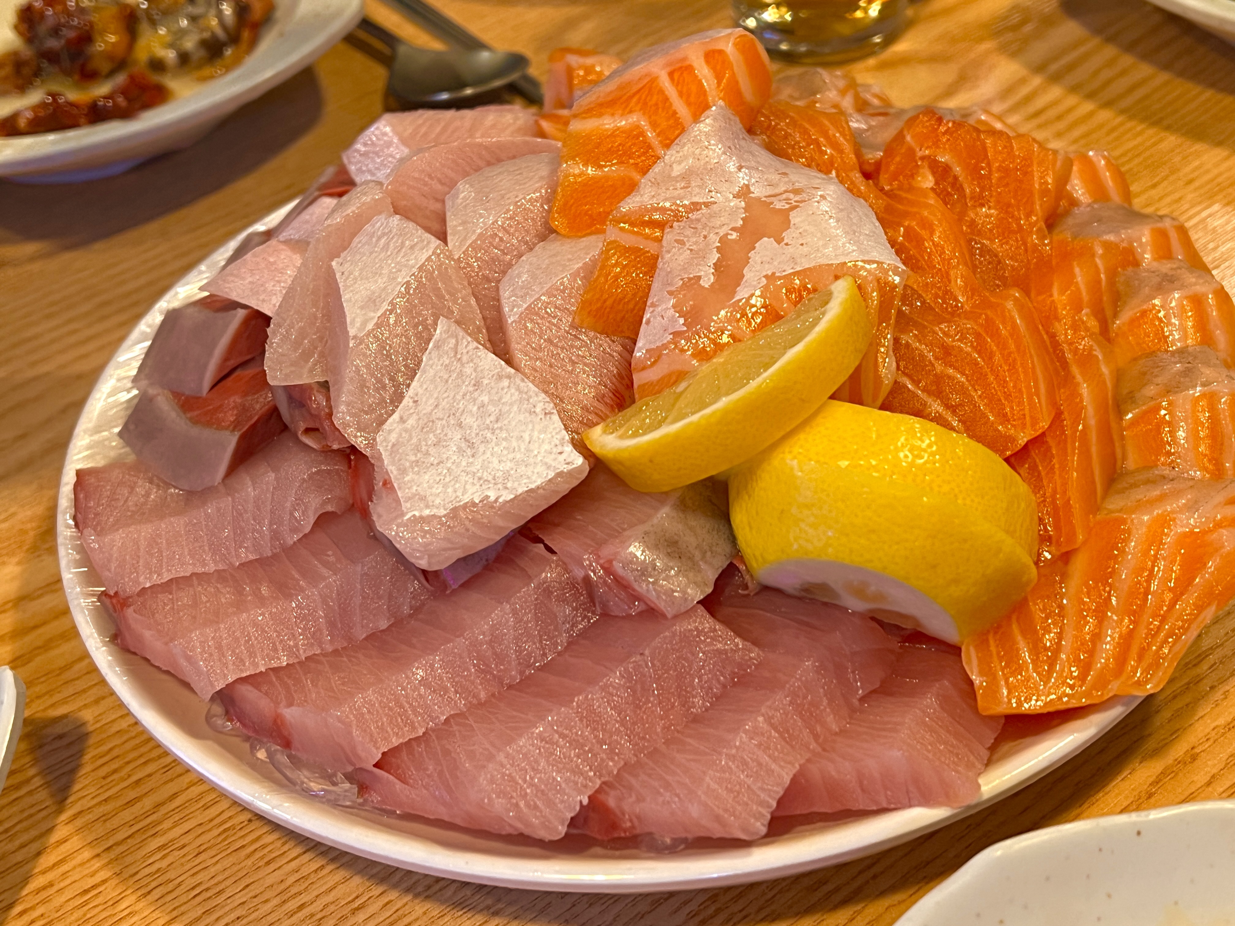 드디어 대방어+생연어 중자가 나왔습니다. 이 맛을 보려고 지옥의 웨이팅을 견뎌냈으니 맛이 없을 수가 없습니다.