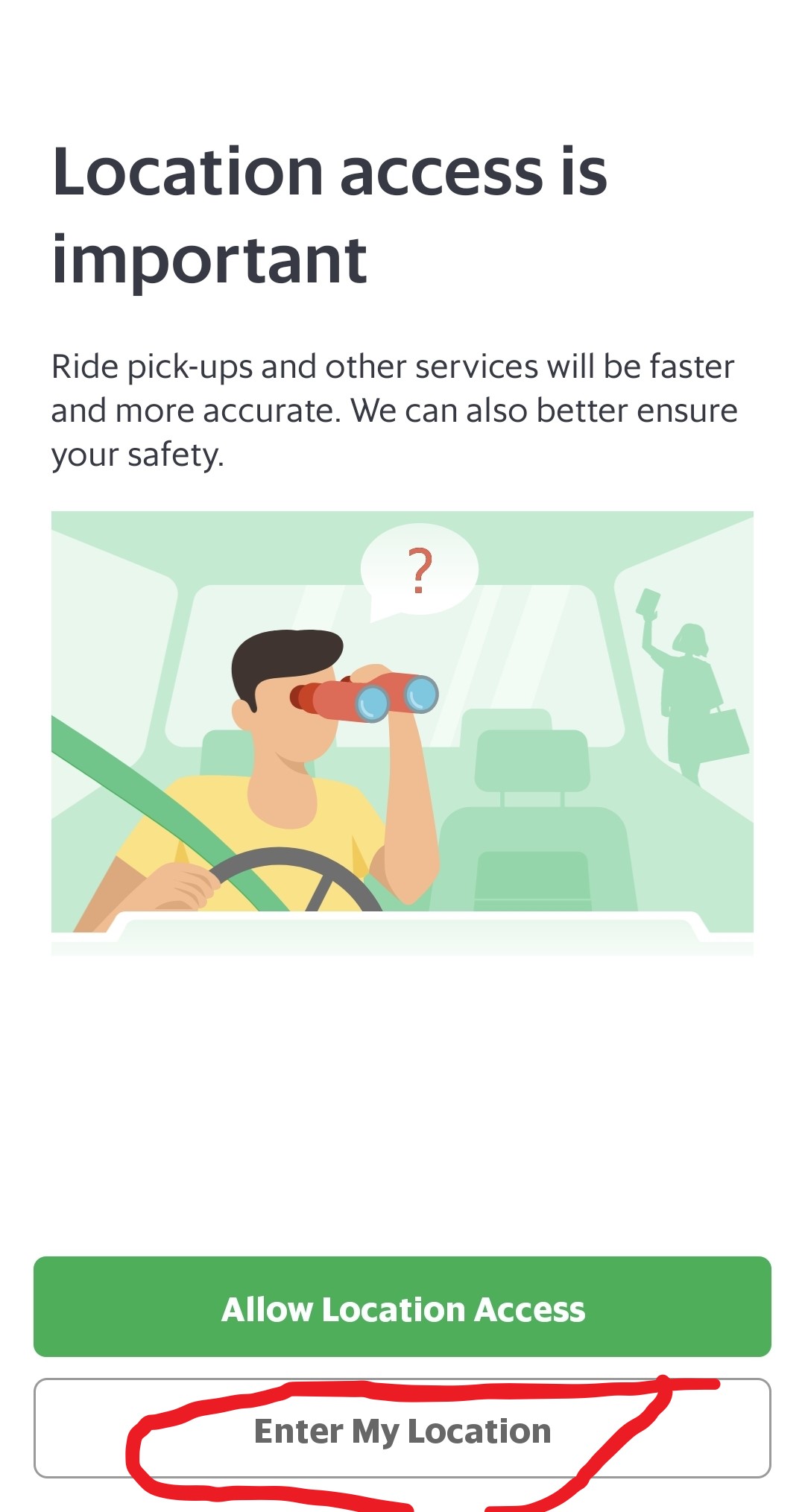 위치 권한을 주지 않으면 위치 권한은 중요하다며 다시 한번 물어보지만 신경 쓰지 말고 아래의 ENTER MY LOCATION을 눌러서 수동으로 위치를 설정해 줍니다.