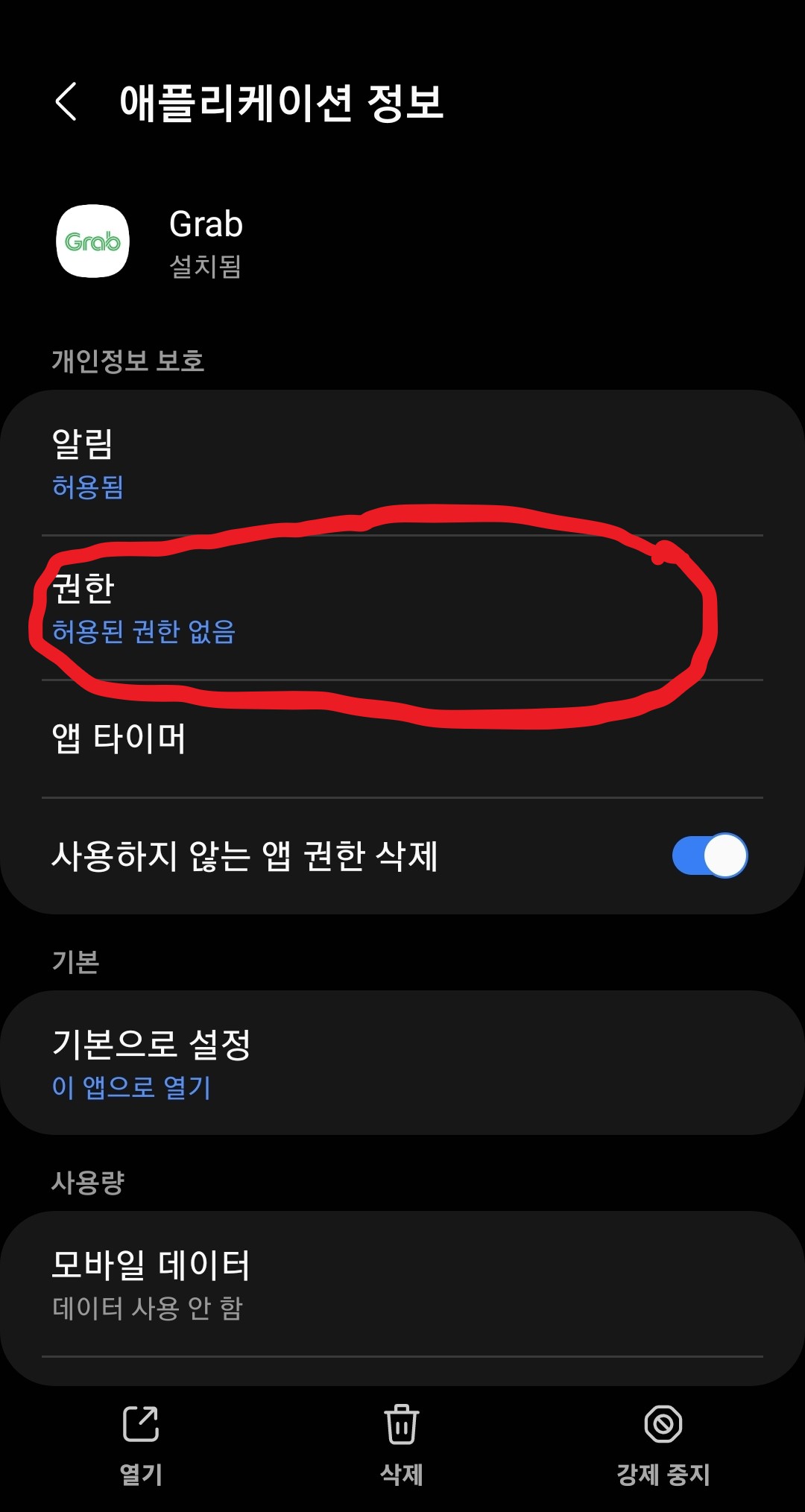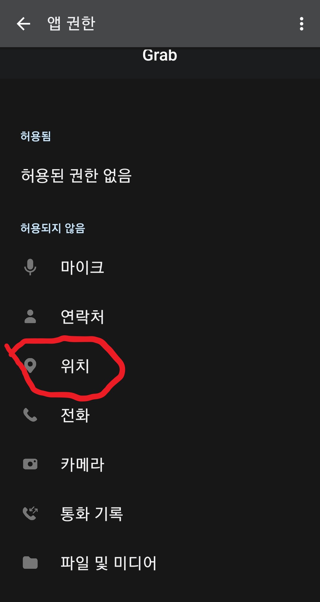 (아이폰 유저라도 설정에서 동일하게 그랩어플을 찾아서 아래 위치 권한만 주면 됩니다.)