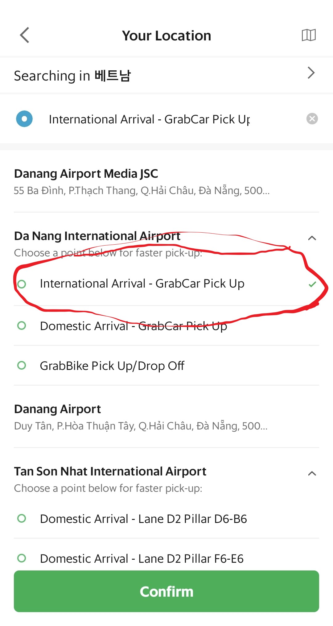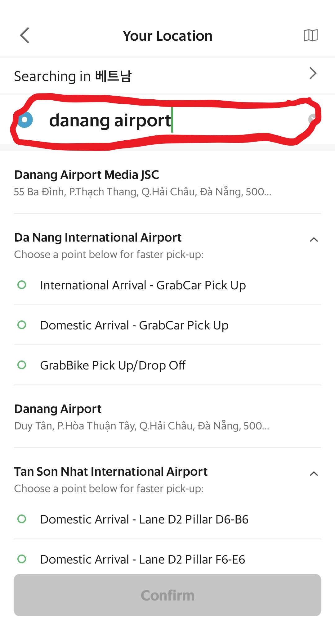 국가를 설정했으면 베트남 내에서 어느 곳이라도 위치를 지정해줘야 합니다. 많은 분들이 설정하는 다낭 국제공항으로 설정해 주시면 됩니다. 위치 입력과 위치 선택 모두 아래 사진대로 해주시면 됩니다.