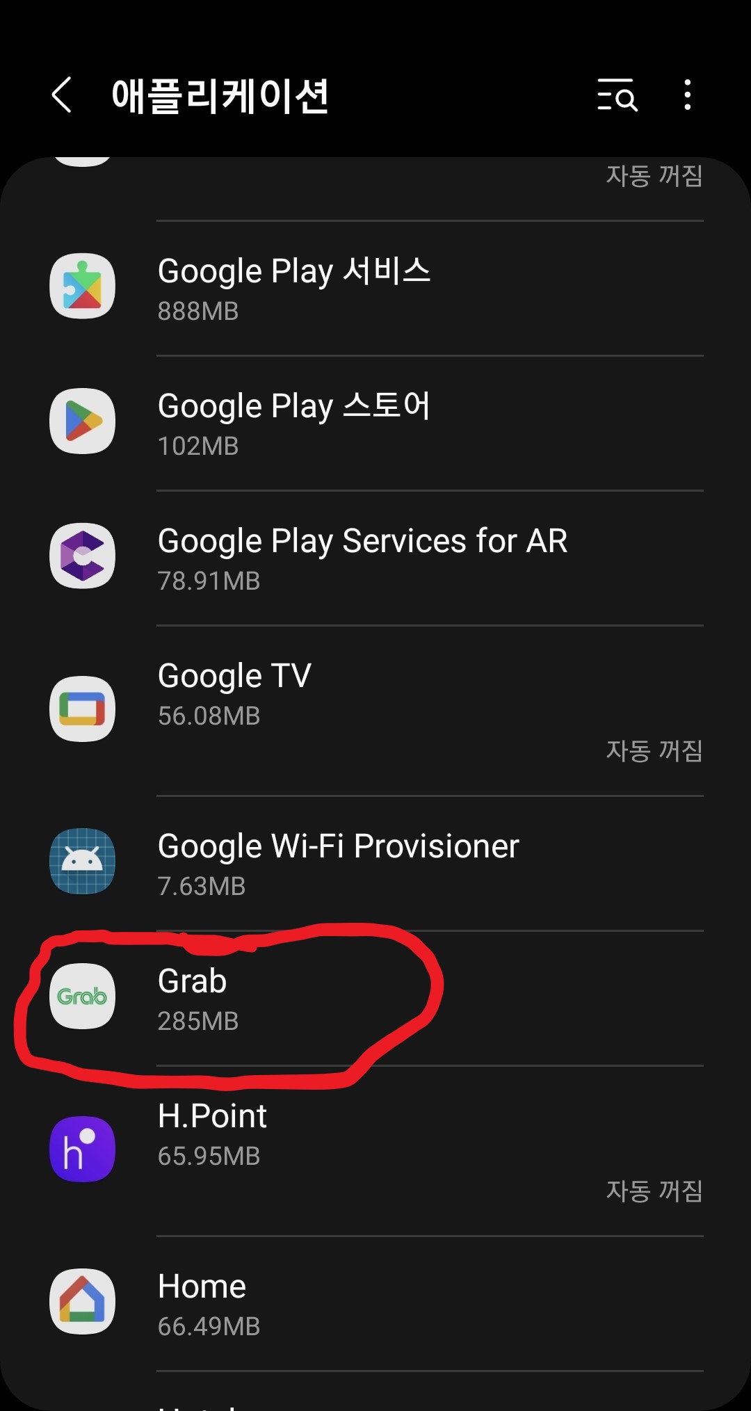 2. GRAB 어플을 찾아서 눌러줍니다.