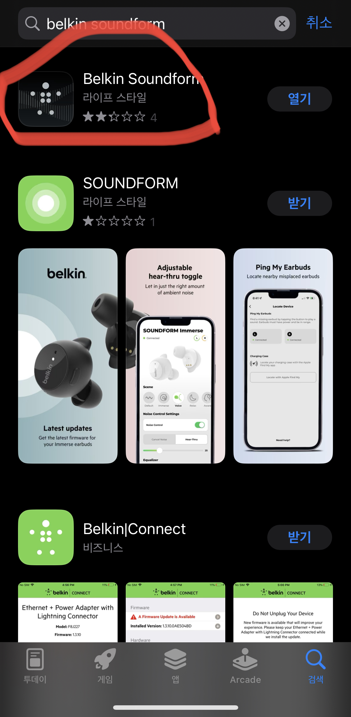 설치는 어렵지 않습니다. 이렇게 클 필요가 있나? 싶은 전원을 꺼내 제품과 연결해주고 플러그에 꼽으면 설치는 끝입니다. 그 후 앱스토어에서 "belkin soundform"을 검색하여 어플을 설치해줍니다.