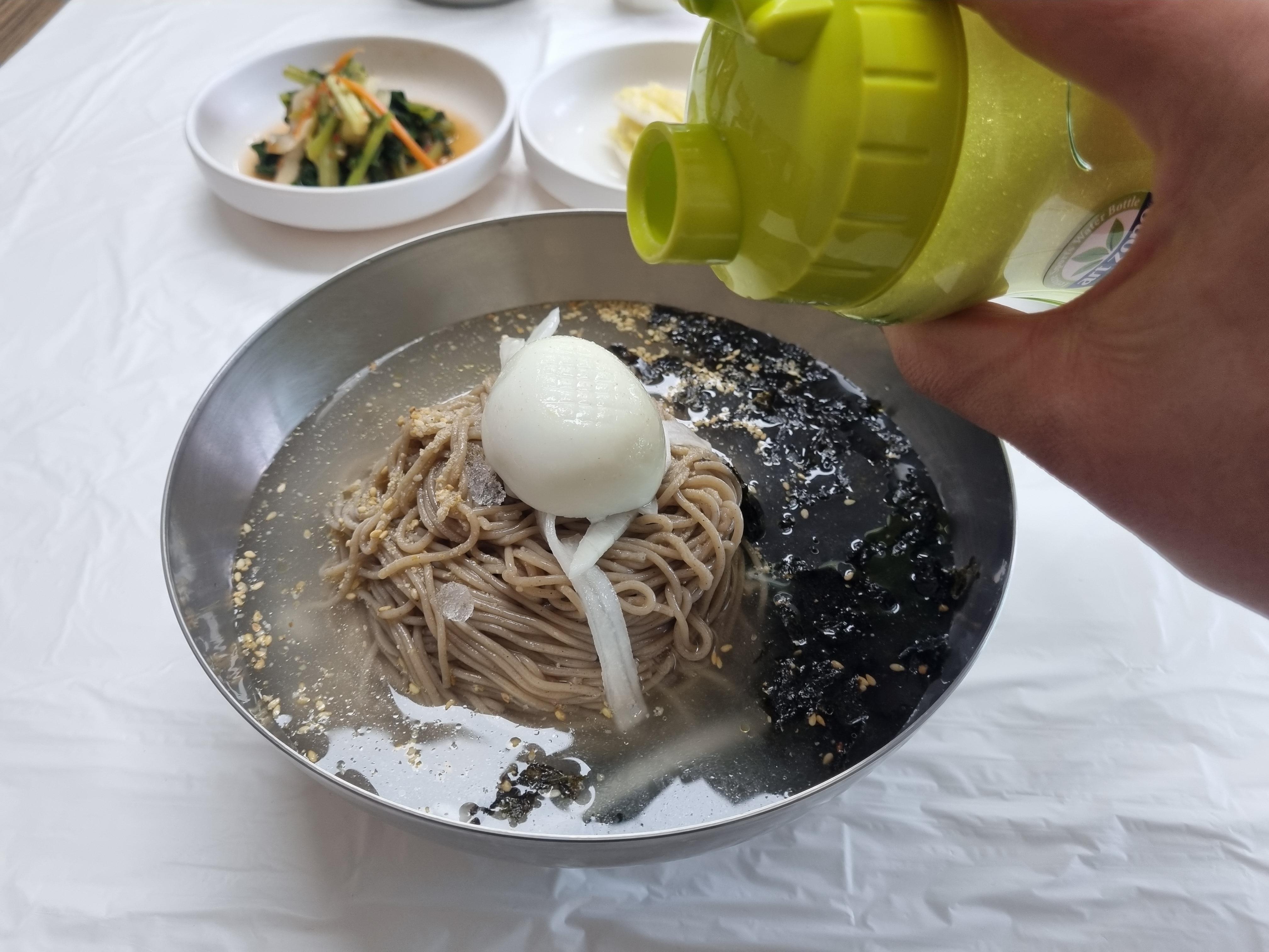 들기름이 고성 현지인이 추천하는 막국수 맛집 부자 막국수의 맛을 더욱 풍성하게 해주는 것 같았습니다.