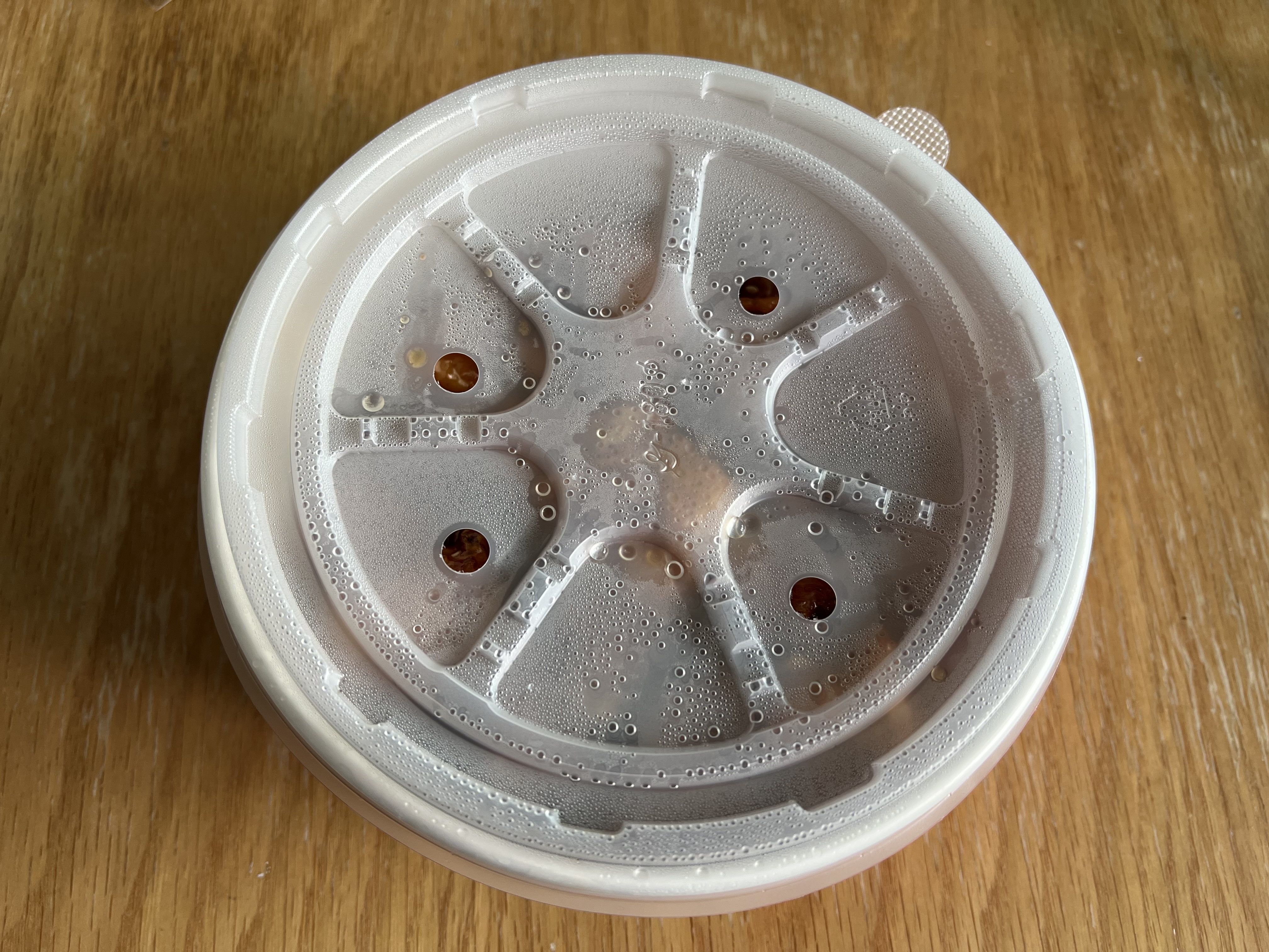 포장용기에 눅눅해 지지않게 뚜껑에 구멍이 있습니다.