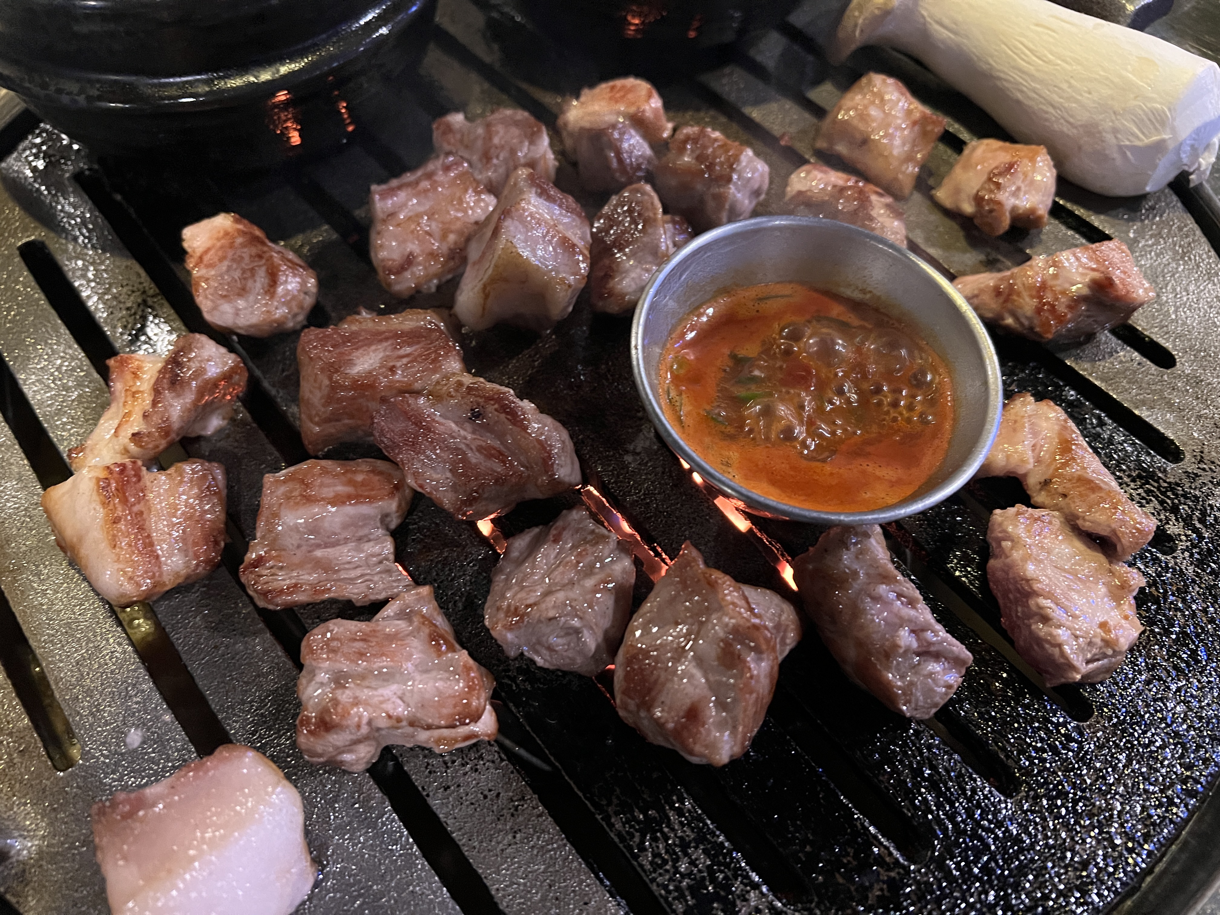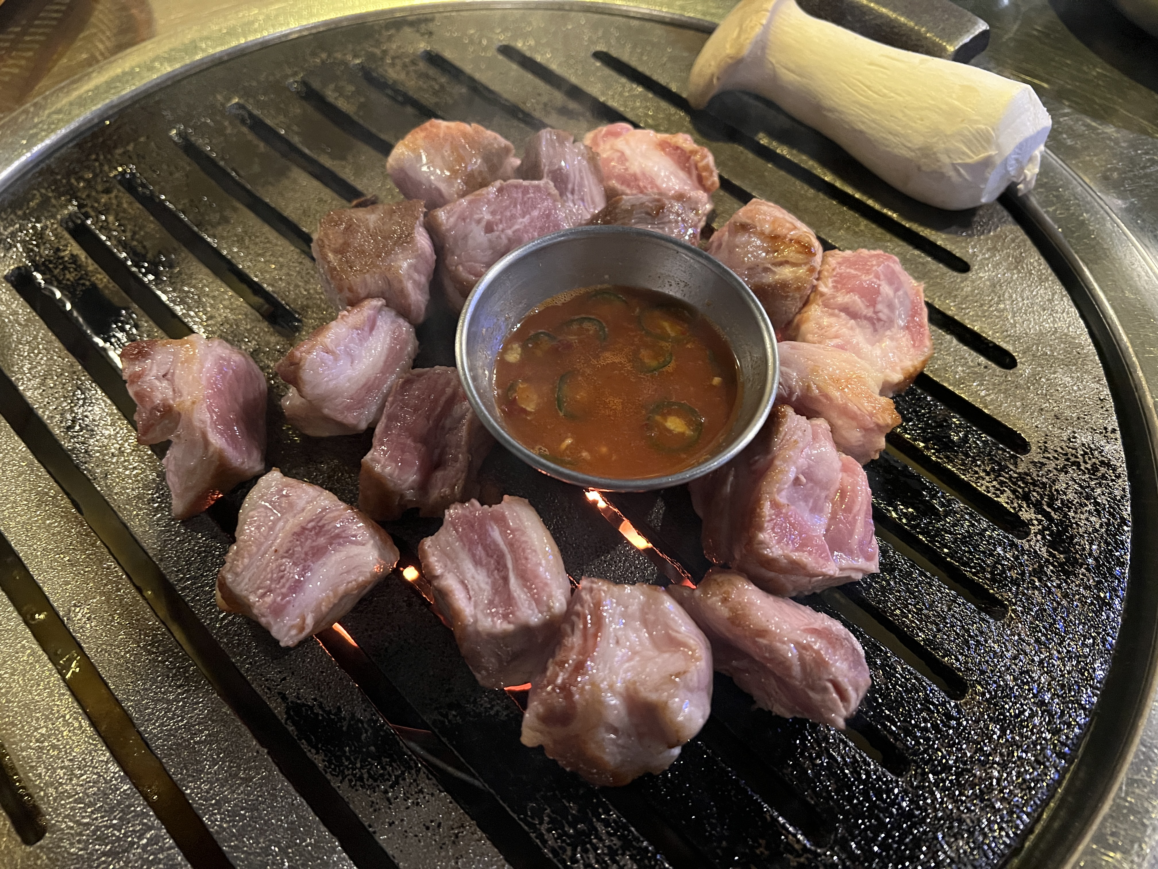 고기는 일하시는 분이 전문가의 손길로 맛있게 구워주십니다. 한쪽면이 기가맥히게 익었습니다.