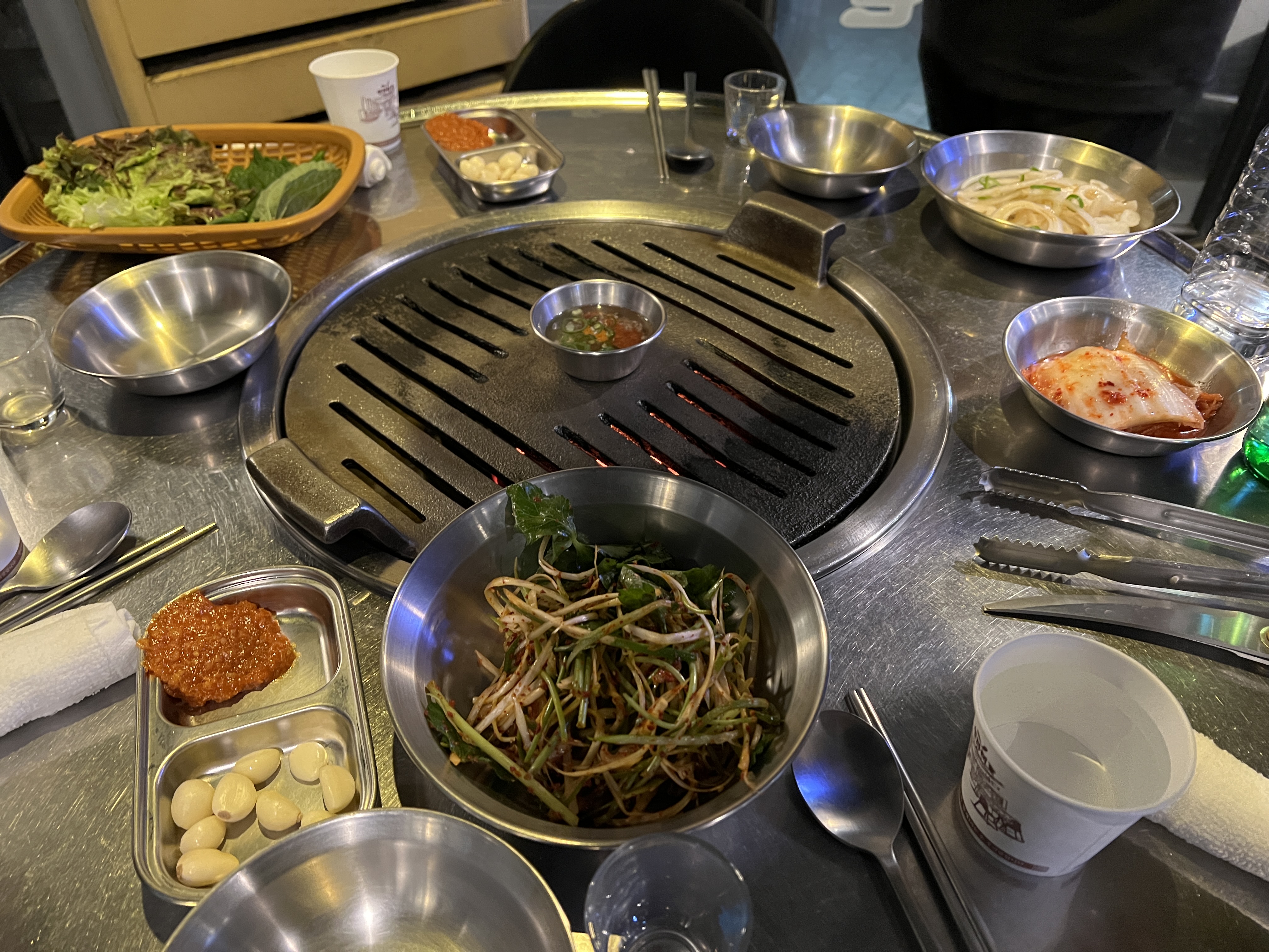 밑반찬은 김치, 양파절임, 쌈장, 마늘, 상추, 깻잎, 파무침, 특제소스 등 딱 필요한 반찬만 제공됩니다.
