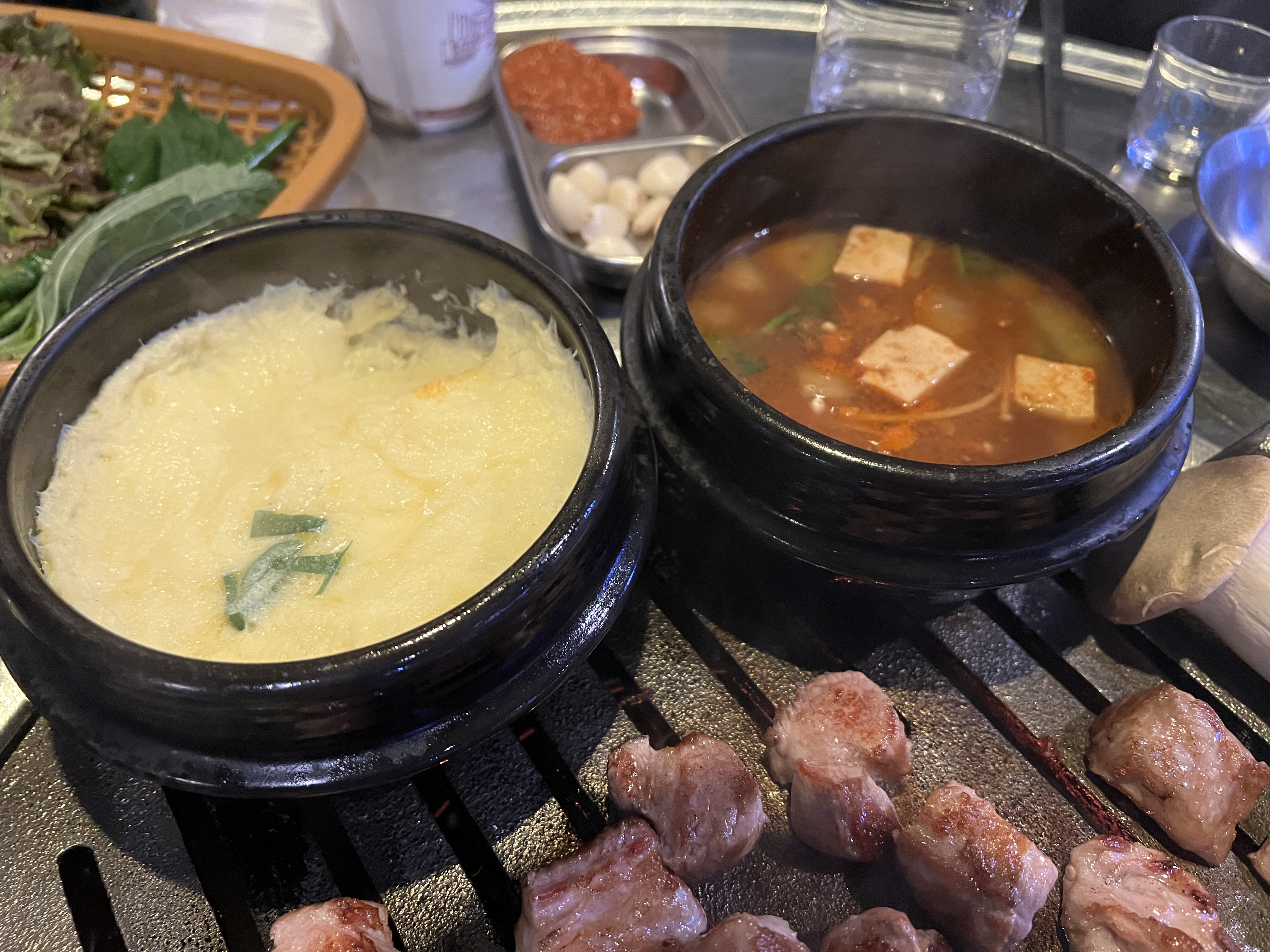 계란찜과 된장찌개가 나왔습니다. 처음엔 기본으로 나오지만 추가는 각 3,000원 입니다.