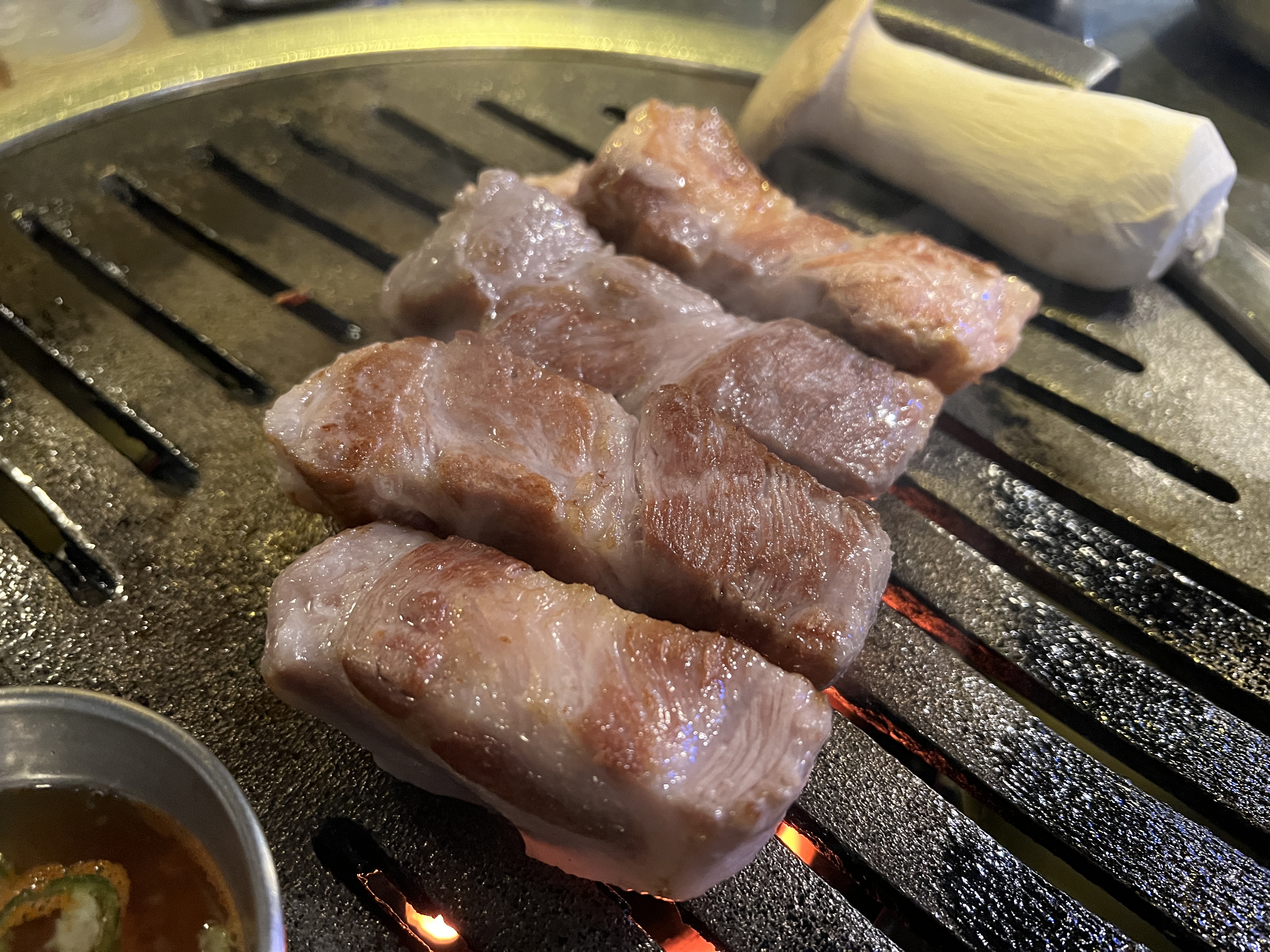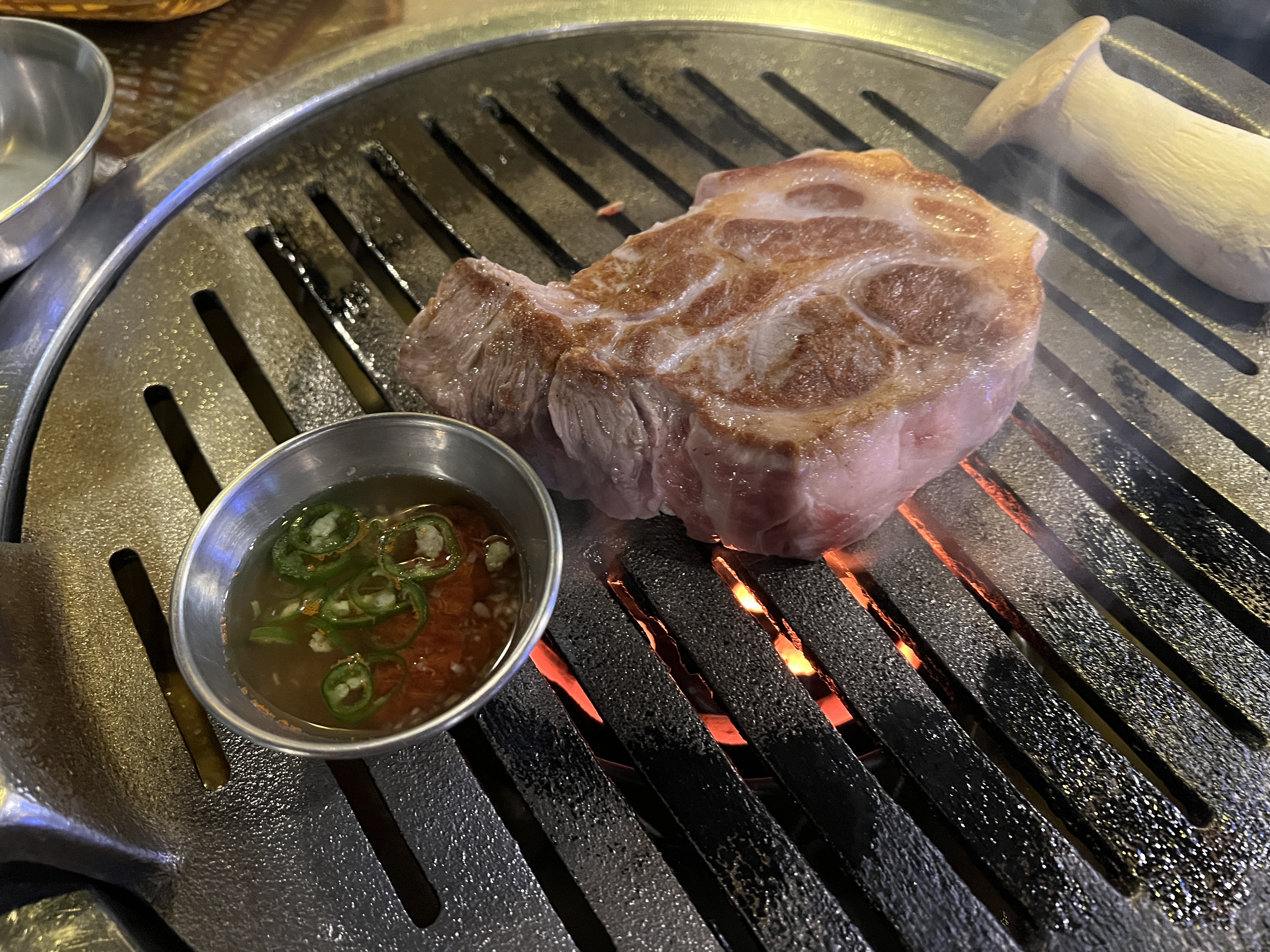 고기는 일하시는 분이 전문가의 손길로 맛있게 구워주십니다. 한쪽면이 기가맥히게 익었습니다.