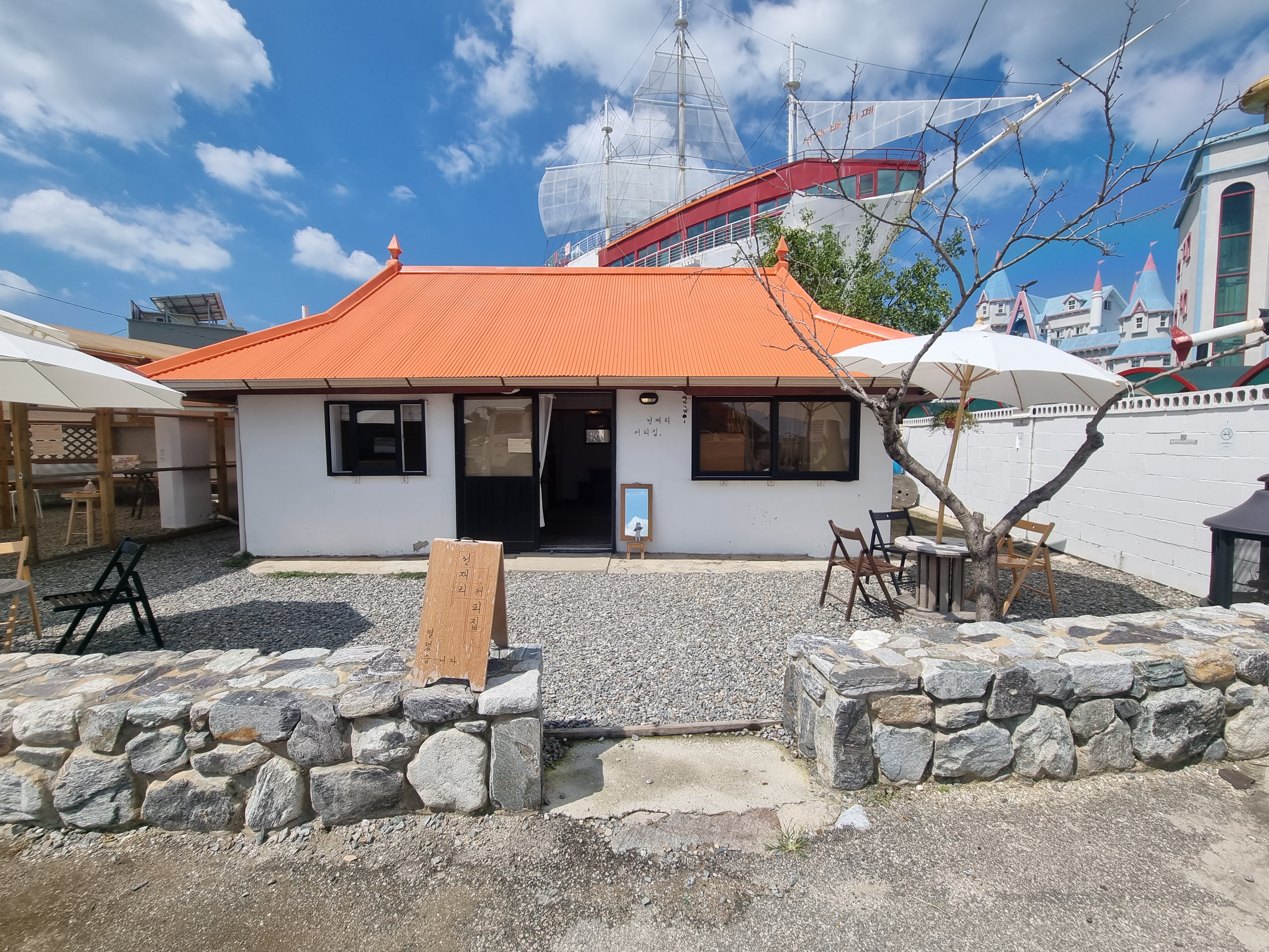 외관은 마치 제주도에 있는듯한 돌담길과 주황색 지붕이 인상적이었습니다.