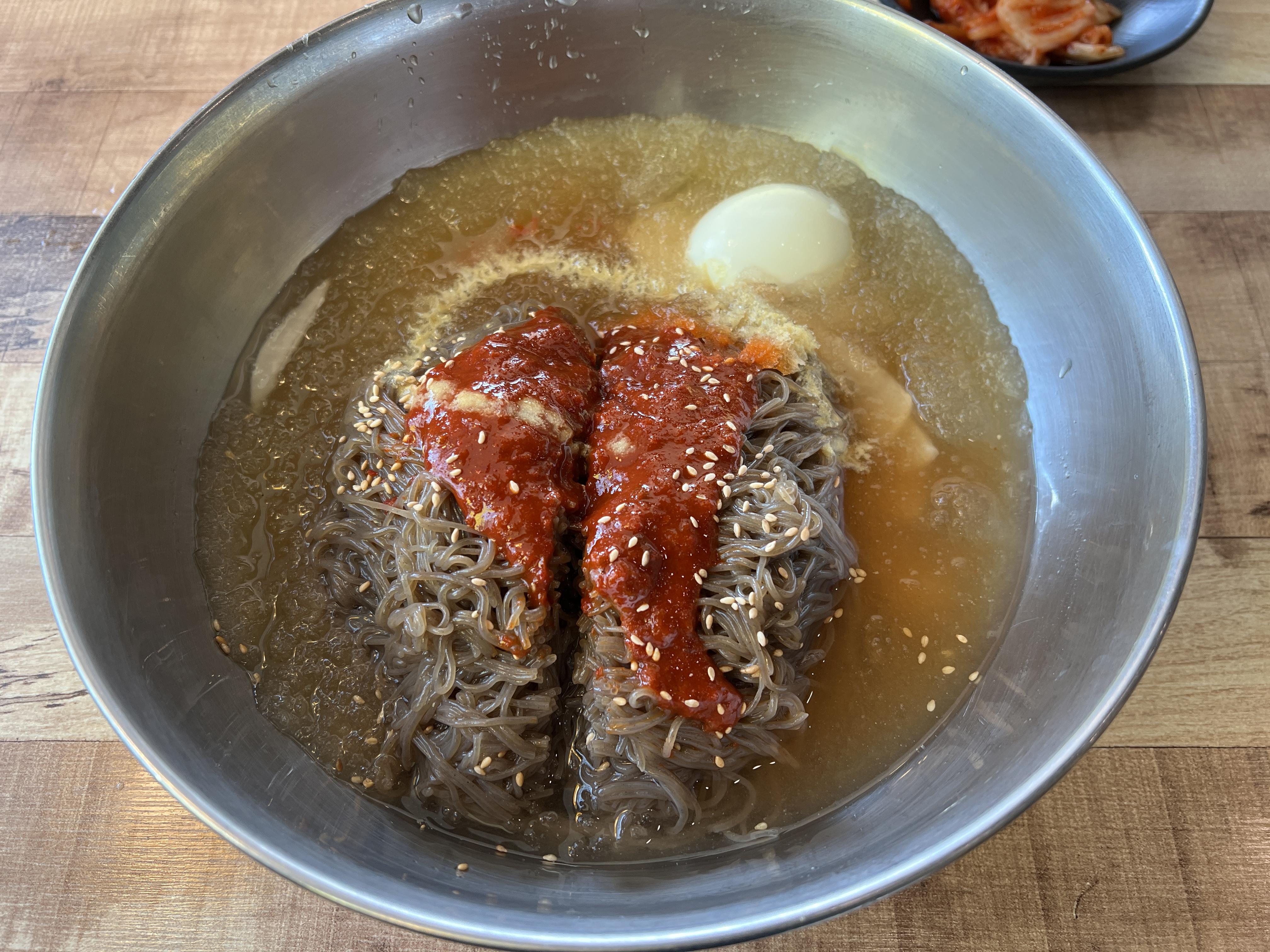 다음은 세숫대야 물냉면입니다.